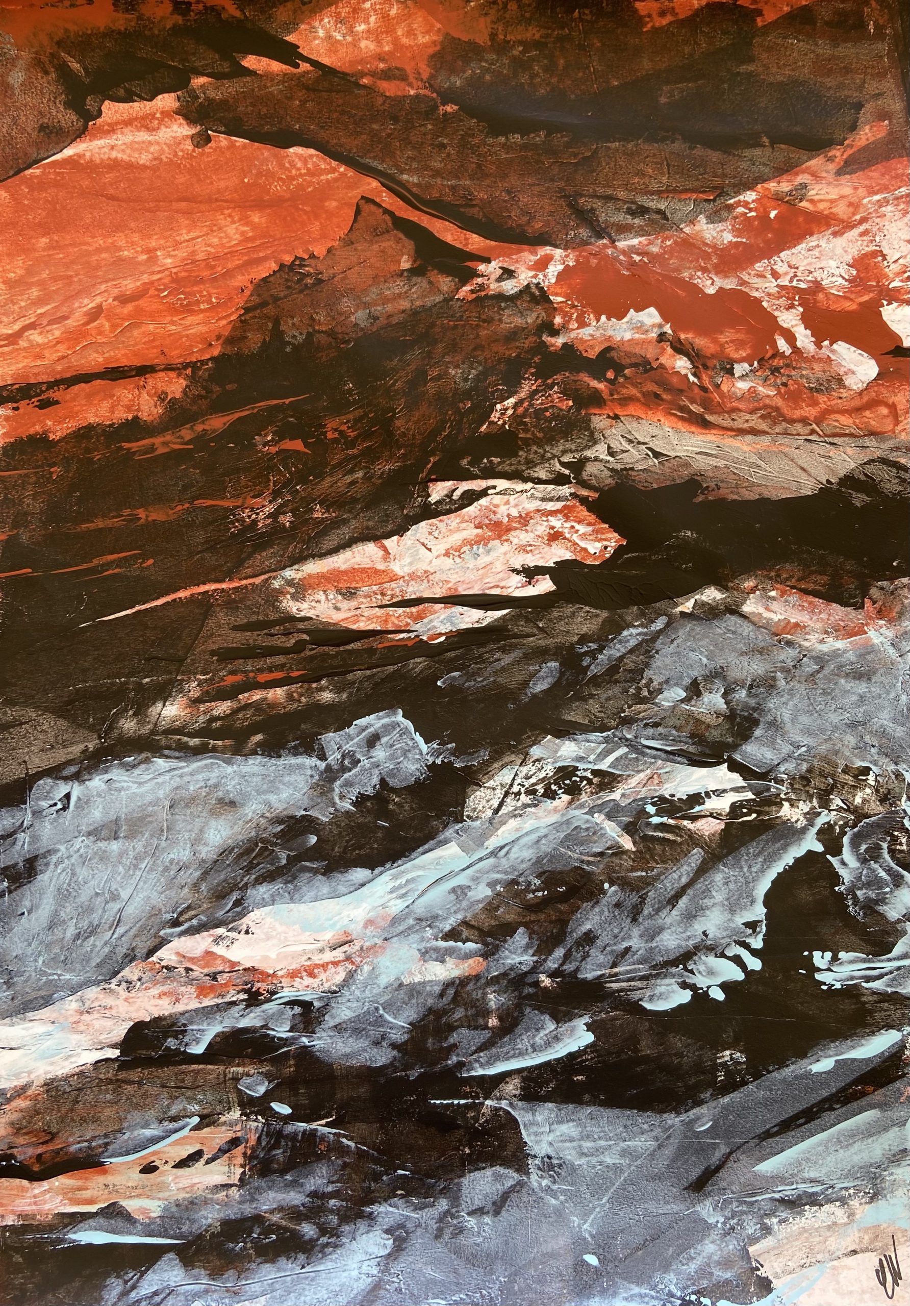 A beautiful abstract landscape painting. 59.4 x 42 cm (A2 size). Acrylic on paper. Frame not included. Requires framing.