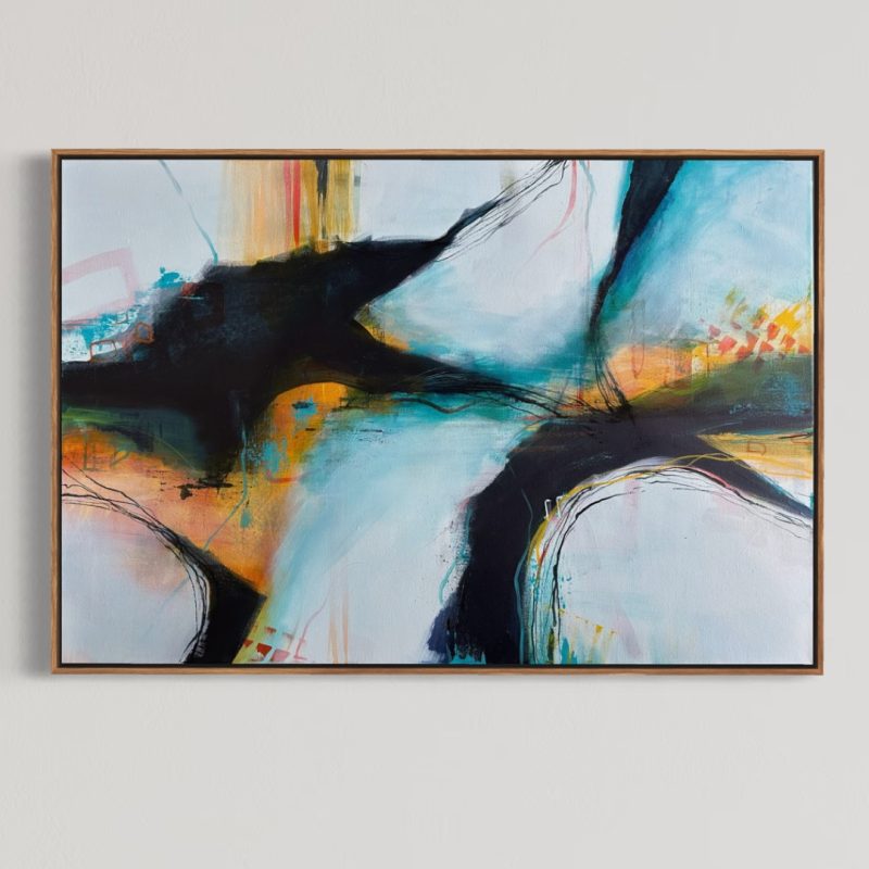 A small original abstract painting on board that can be either free standing, leant on a shelf, or hung on the wall.