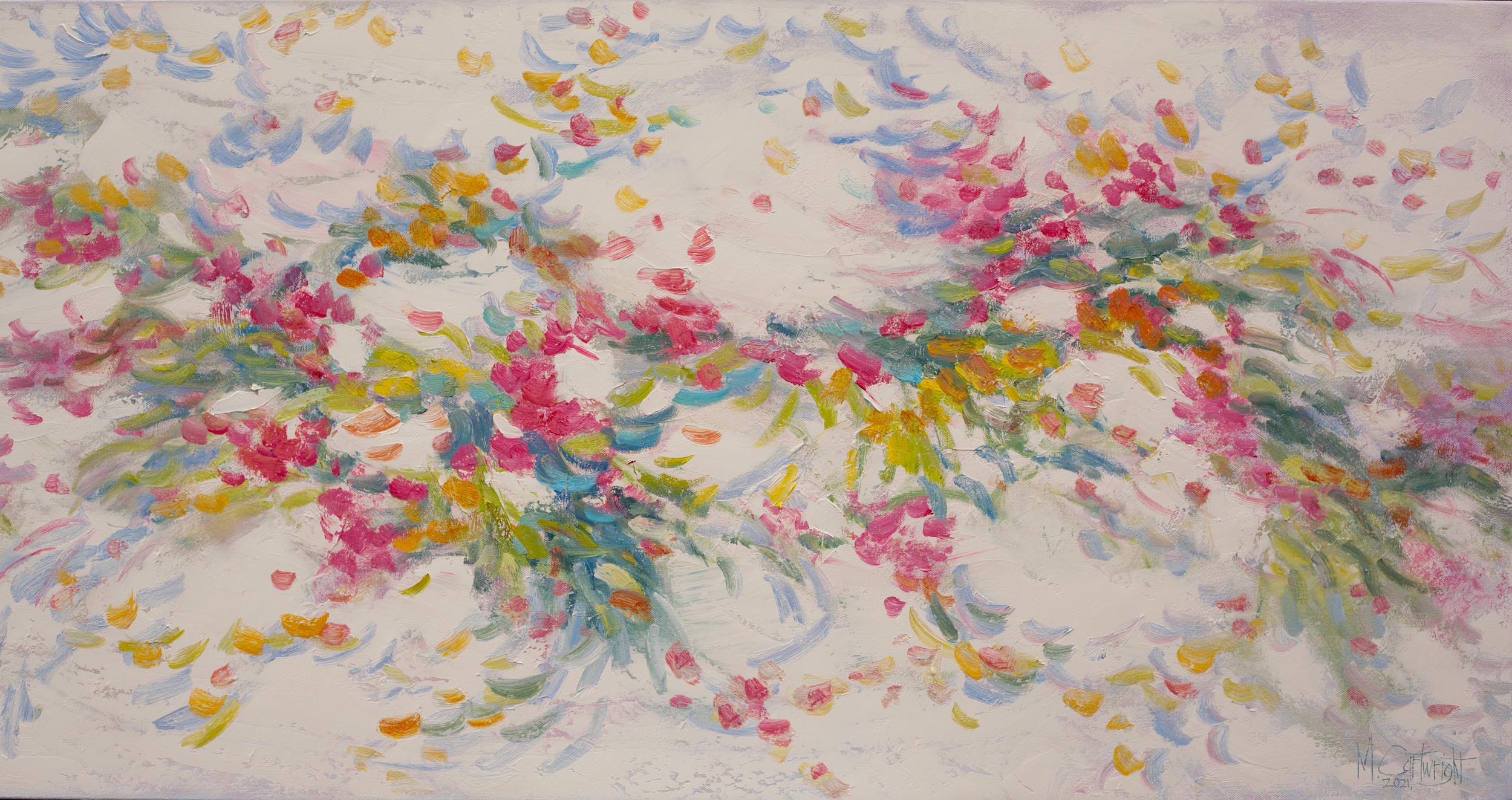 Spontaneously painted in a semi abstract style with emphasis on texture, pattern and rhythm. Rendered using a combination of brush and palette knife with the intention of creating variation in texture throughout. Flower Patterns is one of a series in this technique depicting Australian native flowers.