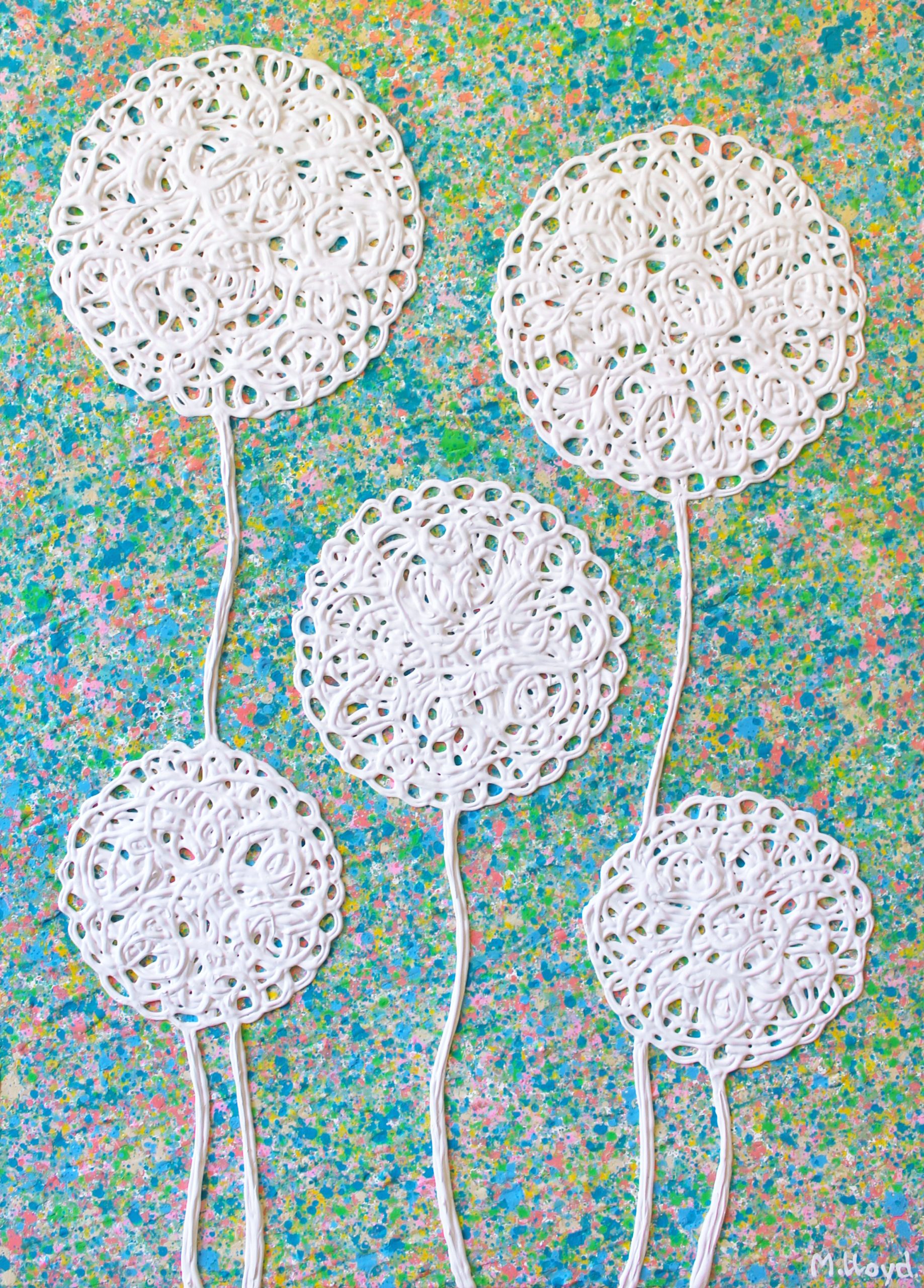 Flowers in Coastal Garden by Miranda Lloyd – If you love TEXTURE this one delivers. Inspired by my love of nature and also textures plus living in the Adelaide hills. Flowers are such a happy subject and also a beautiful uplifting feature for ones space. These colours reflect the flowers you would find wild speckled turquoise, sky blues, pinks, greens, yellow, beige and whites. The background has a light texture with thick chunky piped on flowers that jump off the painting. Painted around edges. The painting looks much better in real life this one is hard to photograph, the close ups give you a better idea of its satin finish, colours and textures.