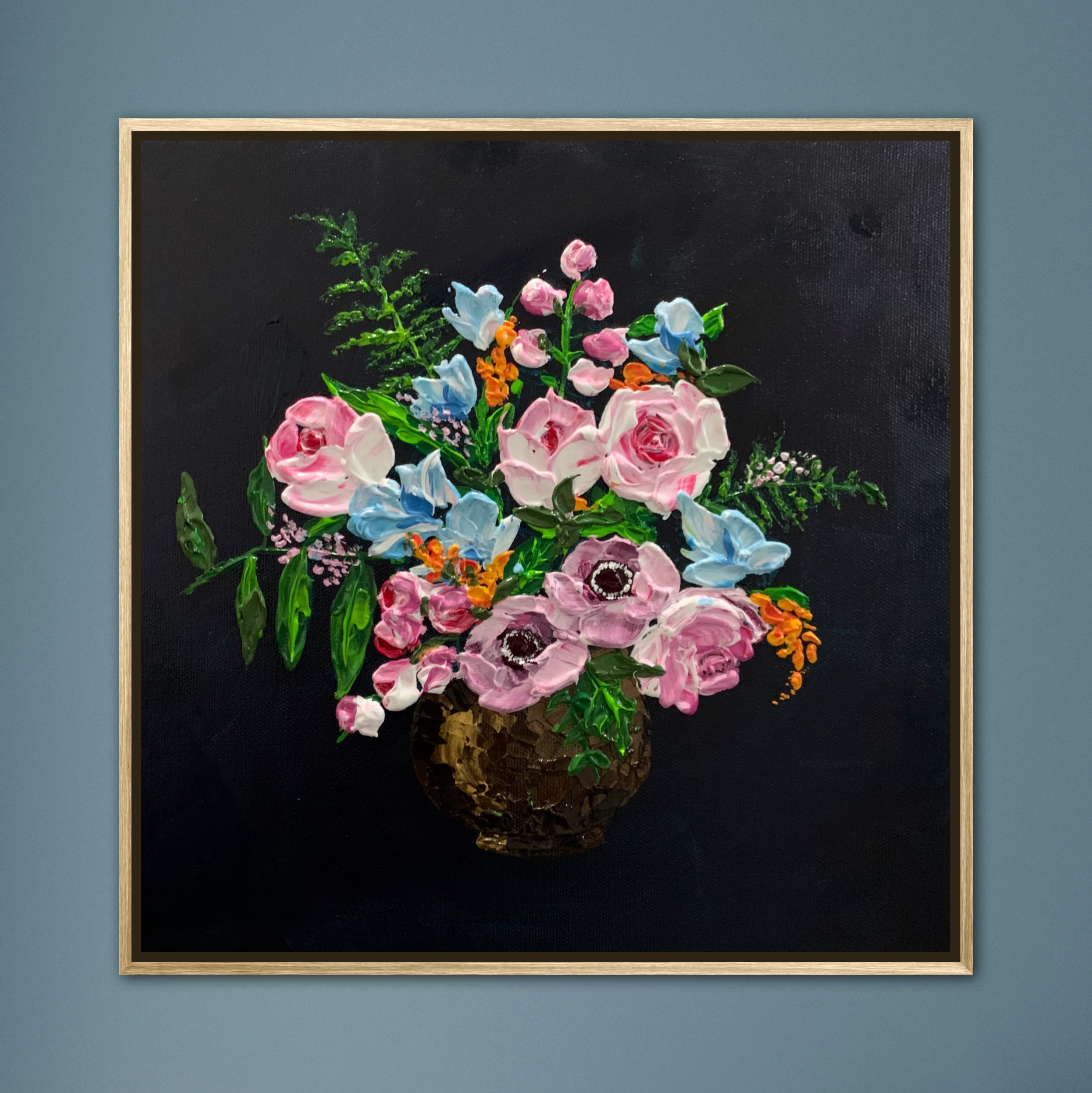 Original artwork by Anjana Rai. I absolutely love painting flowers. This textured artwork is acrylic on canvas.