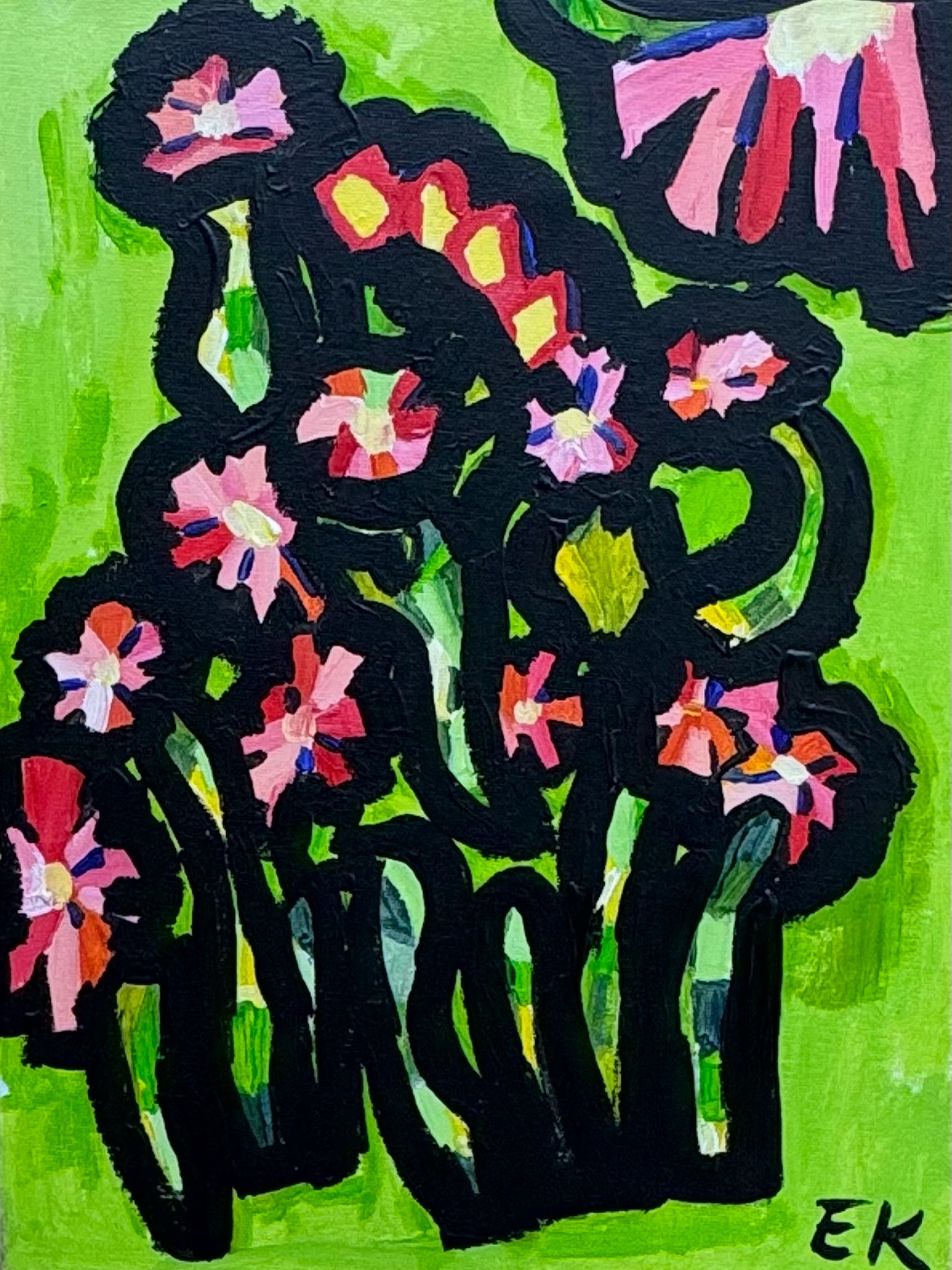 Flowers with a Bright Green Background by Emma Kelly