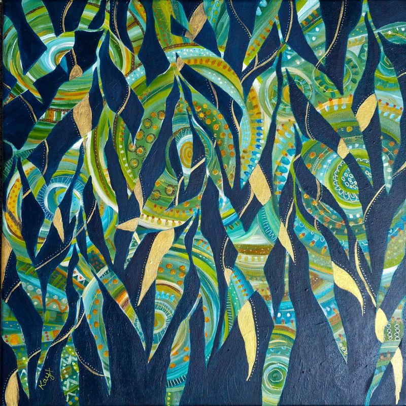 This artwork has been finished with layers of professional grade archival varnish for extra protection, colour enhancement and a beautiful smooth finish. The metallic paint used reflects the shifting light beautifully really bringing the painting to life.
