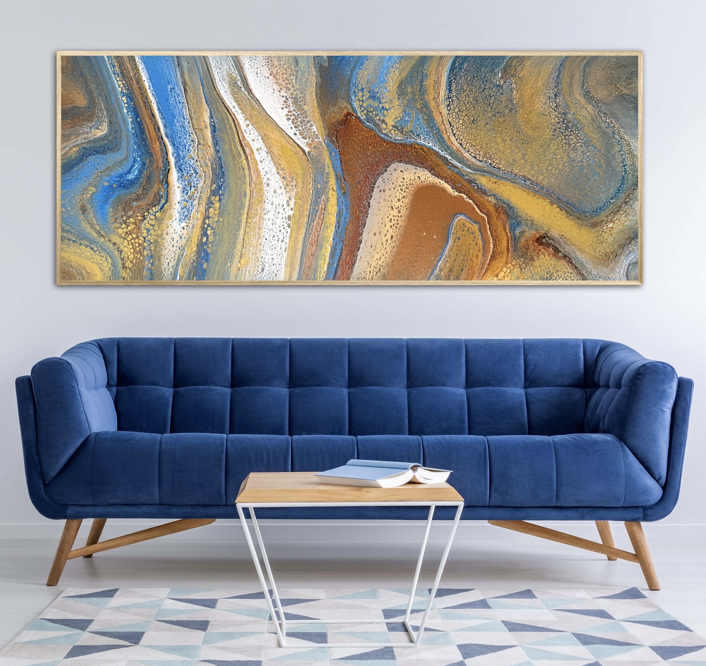 Flowing through coloured sands by Angela Roskell – an extra large multi-directional abstract acrylic painting stretched and ready to hang.