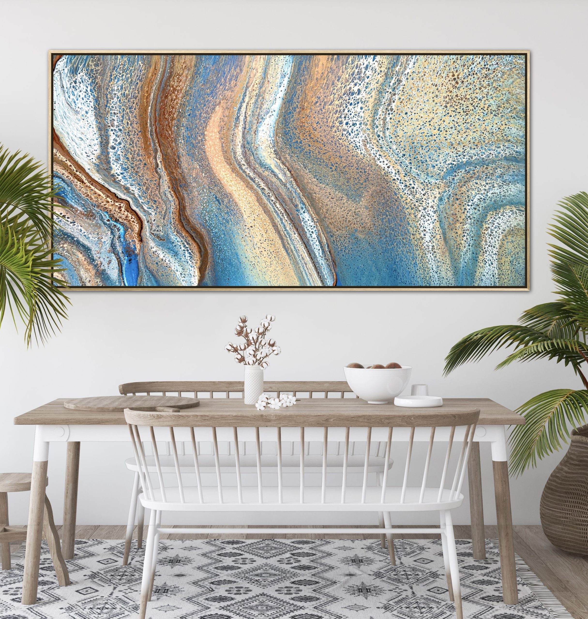 ‘In situ’ photos have been included to help with visualisation of the artwork in your home. In situ photos provided were created using the ArtStage app and may not be perfectly to scale. This being said, every effort has been made to represent the size of the art accurately but please read the dimensions of the artwork to ensure it fits your space perfectly. Where provided, photos of framed art are for illustrative purposes only.
