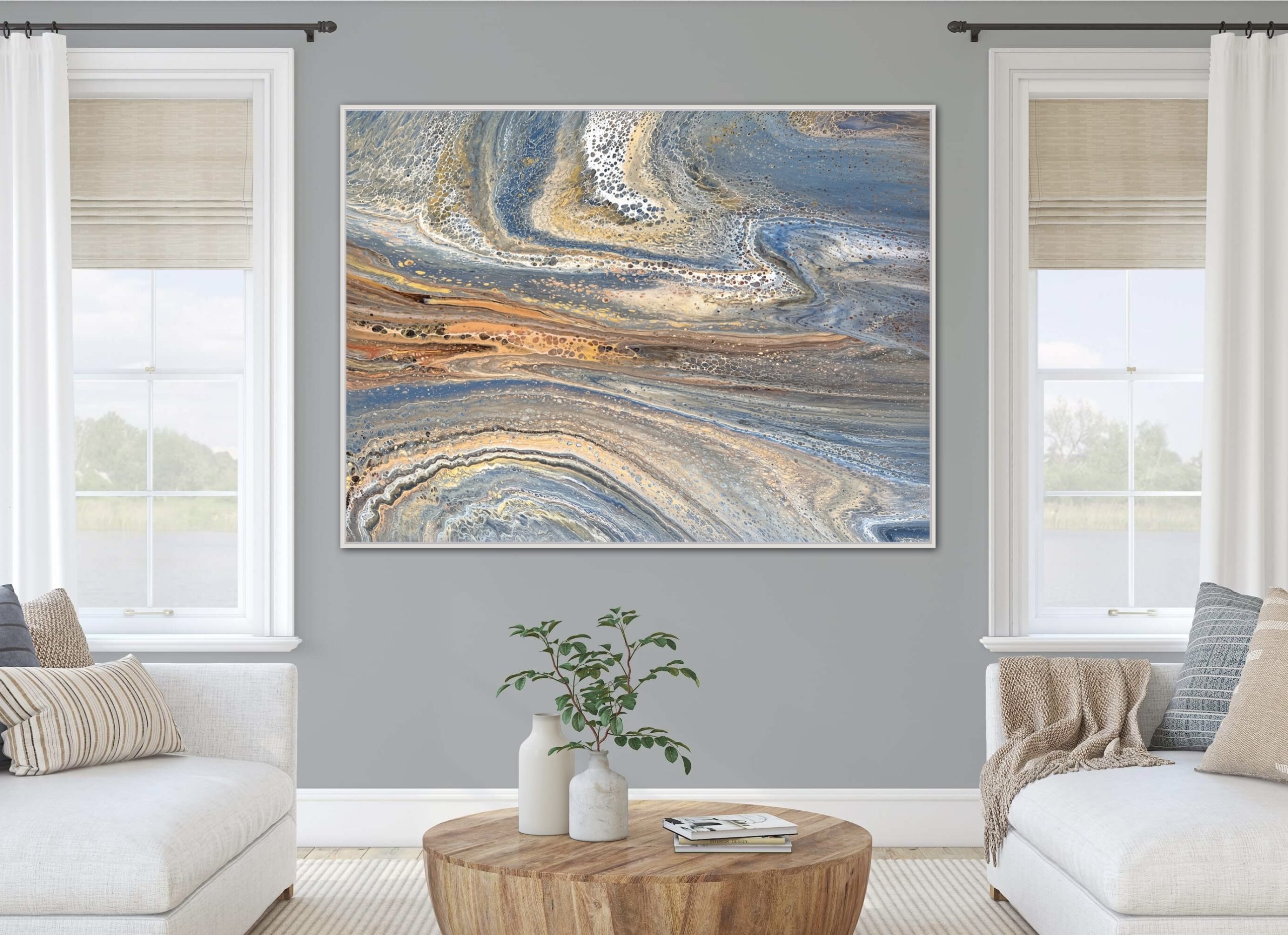 Fluid Harmony by Angela Roskell – an extra large multi-directional abstract acrylic painting stretched and ready to hang.