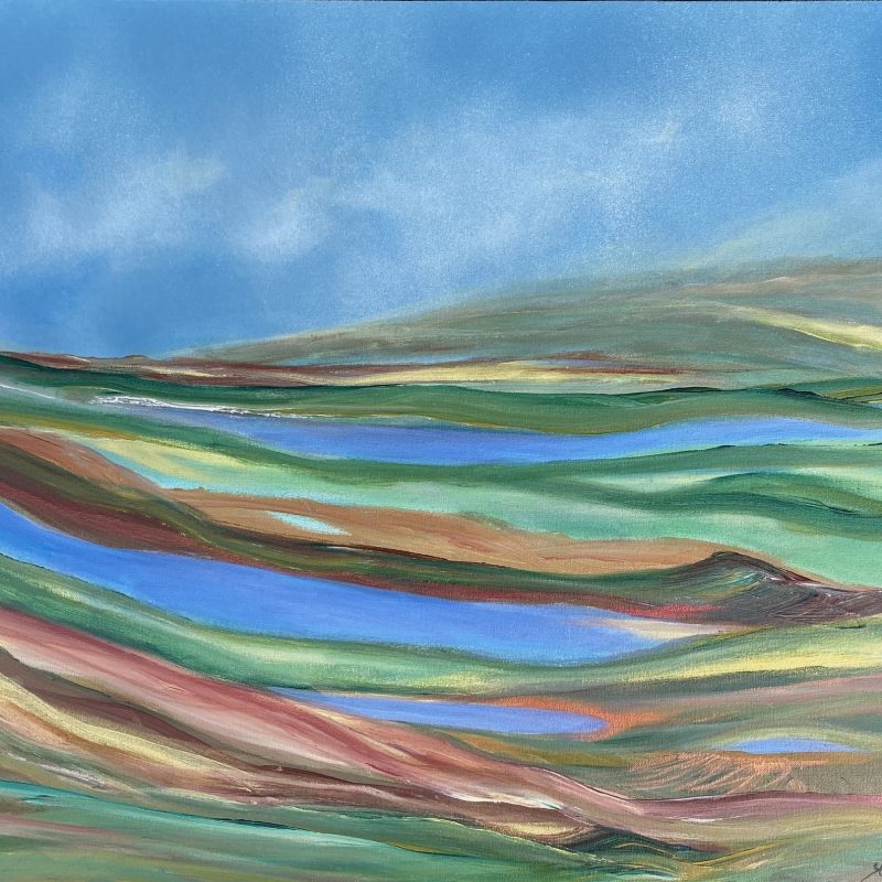 This artwork has been finished with layers of professional grade archival varnish for extra protection, colour enhancement and a beautiful smooth finish. The metallic paint used reflects the shifting light beautifully really bringing the painting to life.