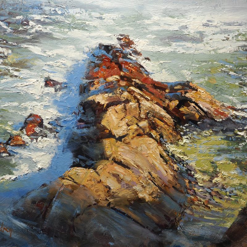 Flying Fish by David Clare – Original abstract painting of a colourful school of fish. I am endlessly inspired by underwater scenes, especially schools of fish. Their shimmering movement, and the beautiful colours of the ocean are irresistible.