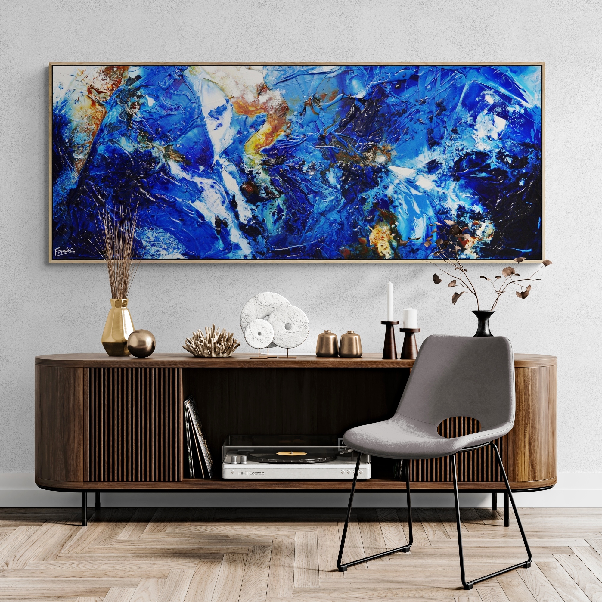 Provided with listings are some insitu images. We strive to ensure they are accurate in scale. Sometimes we will add an external frame to the painting insitu, to provide a vibe for how that would look also. As mentioned above, my pieces arrive ready to install with gallery finished edges and honestly, most people don’t add external framing. However, it is of course an option. If you have any questions, please let me know. We are here to help and want to make it as easy as possible for you if your décor aspirations require it.