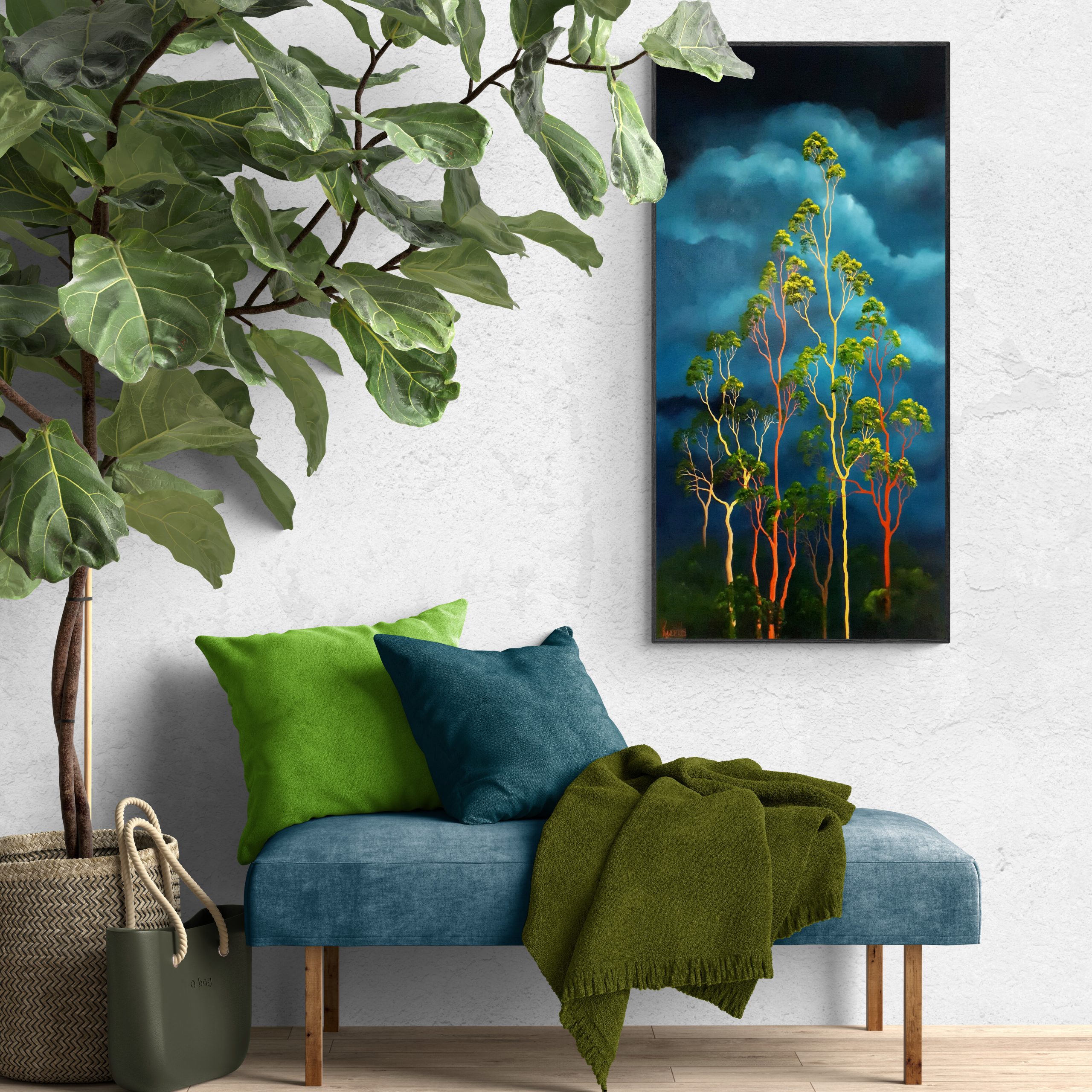 Forest Giants by Lucinda Leveille is now part of a new series of paintings I’ve named ‘Above The Canopy”. Working with the beautiful trees and the cloud combination in this colour palette is my idea of painter’s heaven!