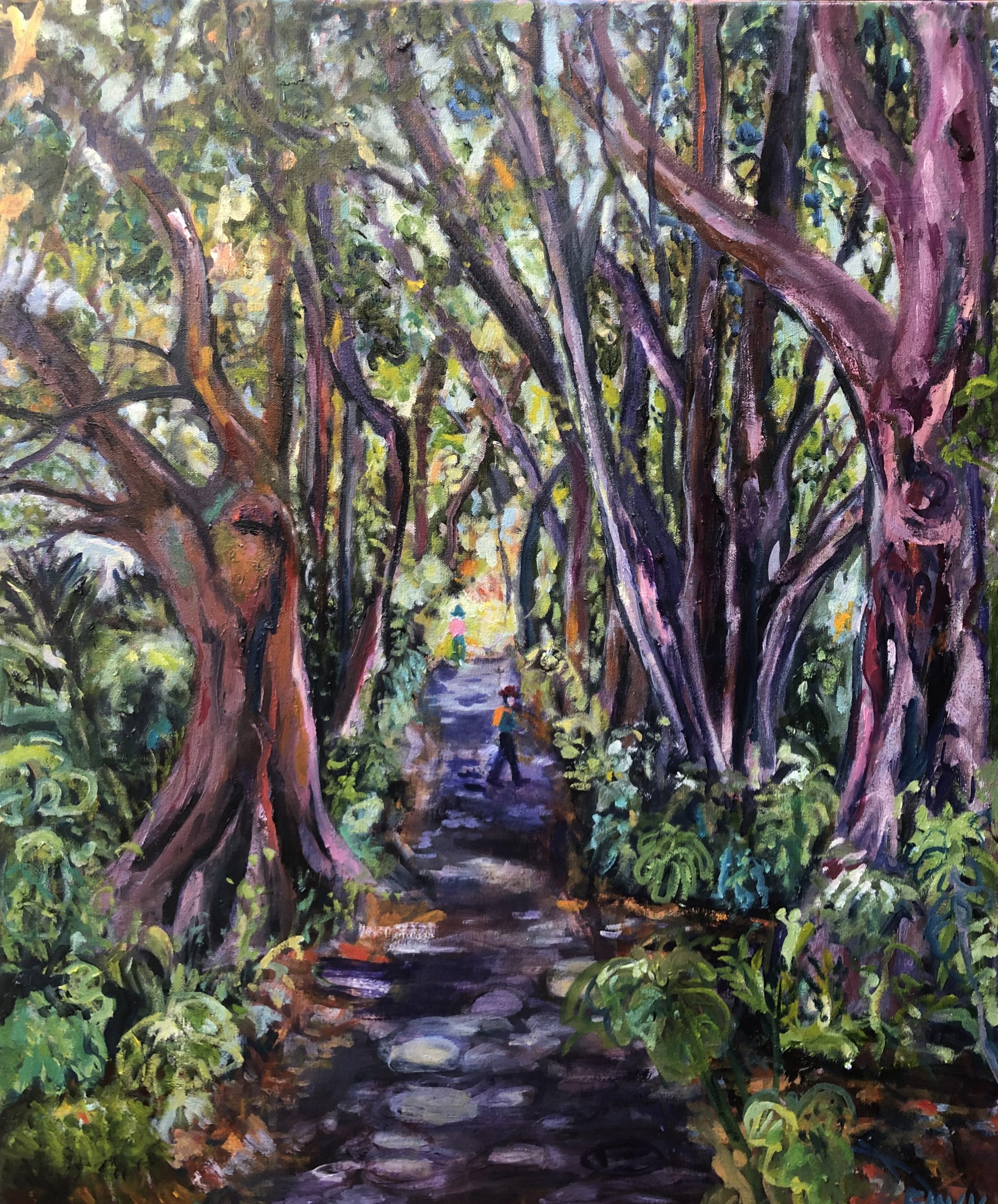 Forest Walk – Adelaide Botanic Gardens by Maureen Finck – The inspiration for this painting is an avenue of majestic Moreton Bay Fig Trees.