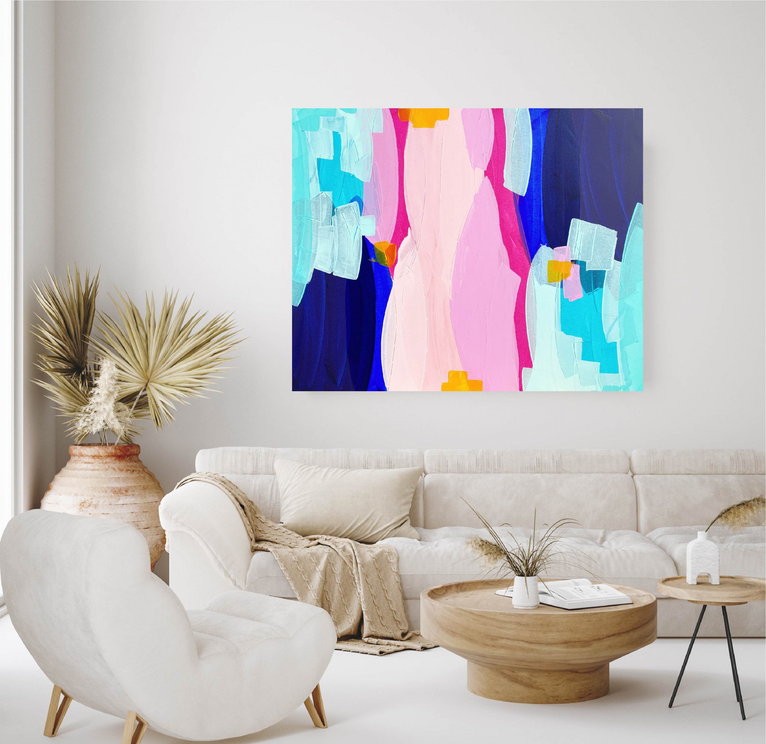 Bright abstract in my signature palette with lots of movement and energy in the strokes.