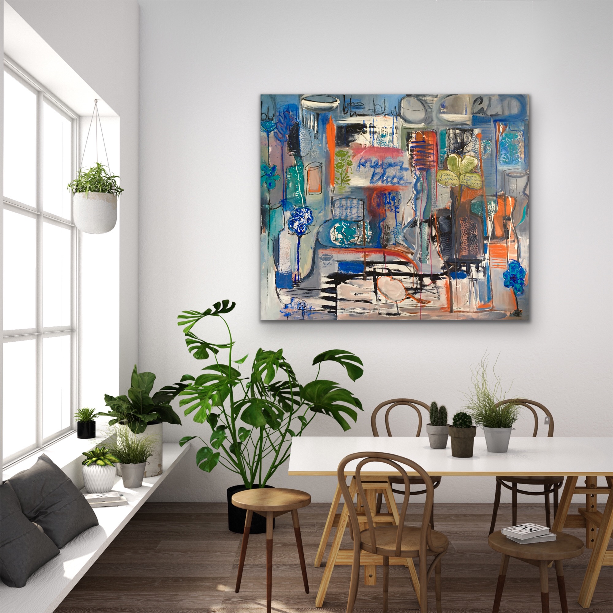 Forever blue  – Mixed Media abstract painting by Marijke Lambregtse on quality canvas, stretched and ready to hang.
