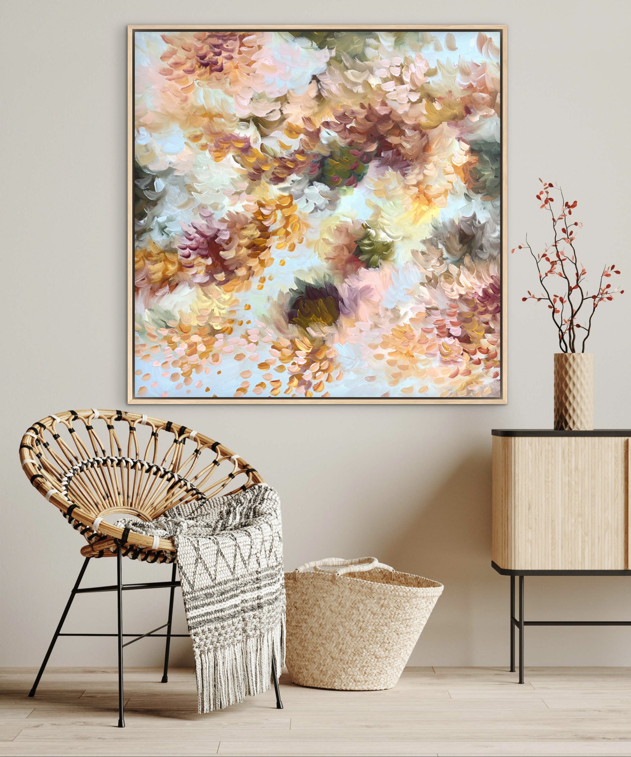 In this acrylic abstract painting, I poured my emotions into swirling, soft brushstrokes to capture a dreamy feeling . The warm, gentle hues evoke a sense of calm and renewal, inviting the viewer to lose themselves in a soothing landscape of light and colour. This piece brings a tranquil, uplifting energy, perfect for creating a peaceful yet inspiring atmosphere in any space.. This painting does not come with an external frame.The painting is signed and dated at the back and comes with a certificate of Authenticity.