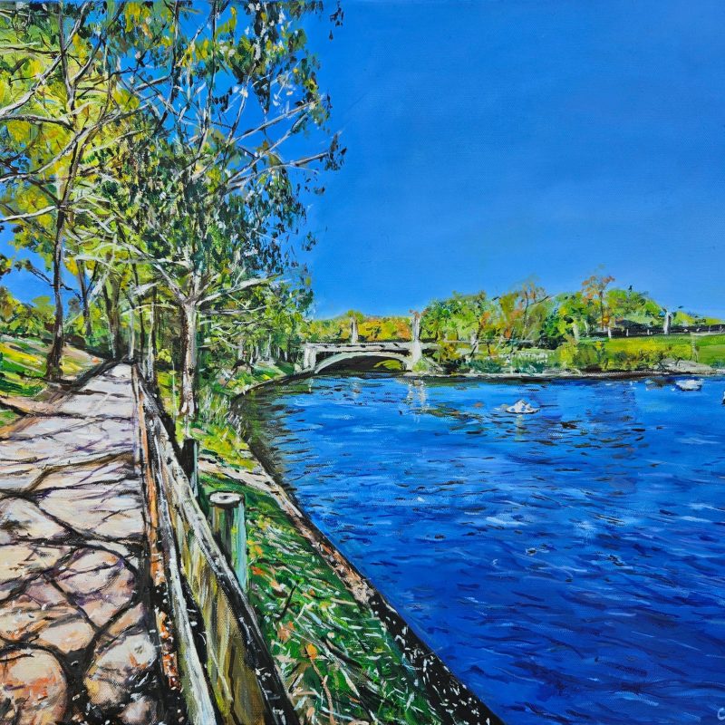 Four O’clock by Jonathan Redmayne is a abstract expressionist style painting, created over a series of days adding one splash off colour at a time, A new series for 2023 titled “origins”.