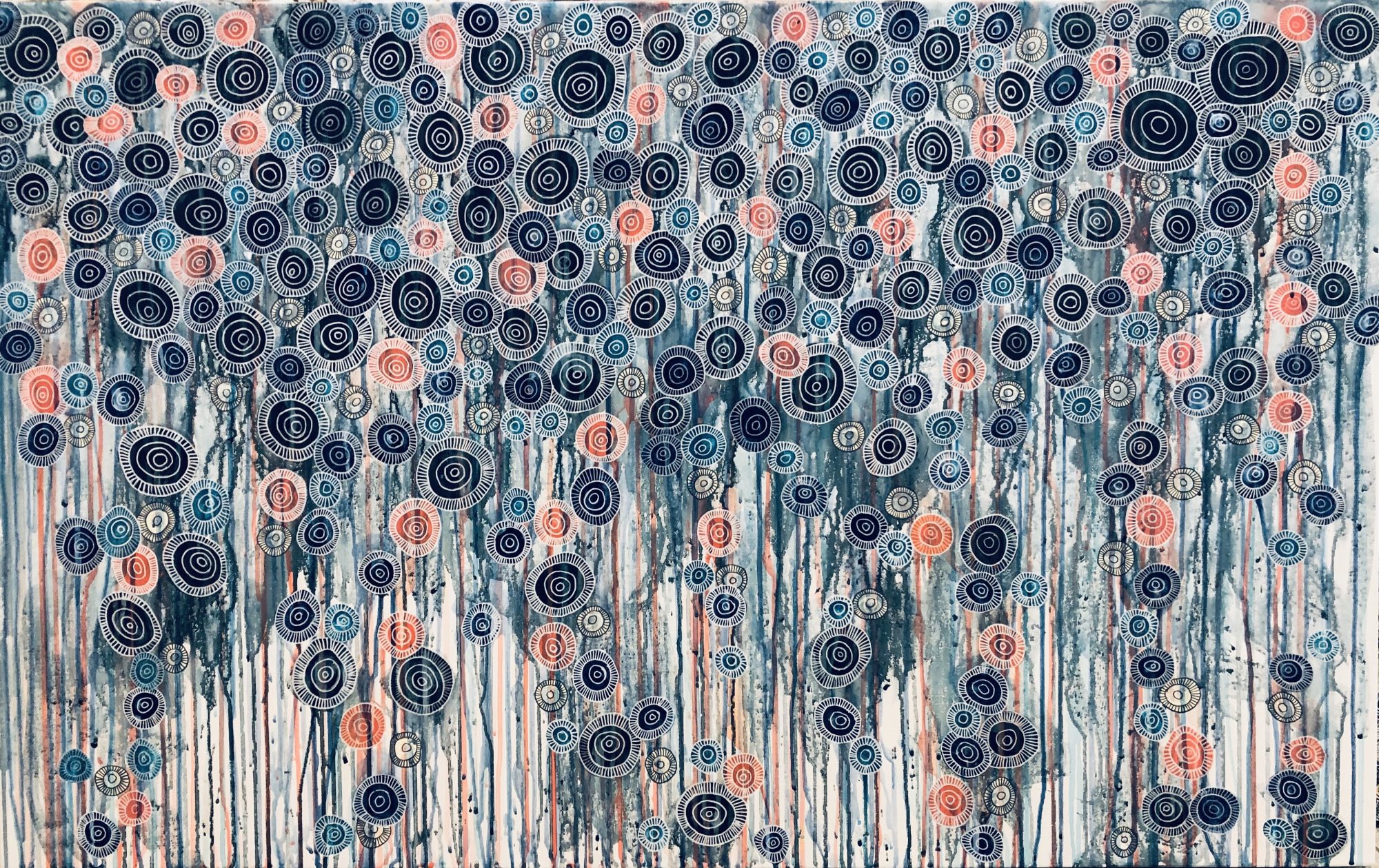 Original hand painted abstract art. Acrylic paint applied using a brush for the base and then hand drawn lines using an acrylic pen added. Each brush stroke is used as the shape to draw the lines. Lots of lines, lots of detail. Layers added. Each coloured is also used to form the drips. The white lines make the colours stand out. Beautiful blue, turquoise, and pink. Look at the close up photos and you will see the detailed line work, sometime the photos do not do the painting justice. Love this painting, love the effect.