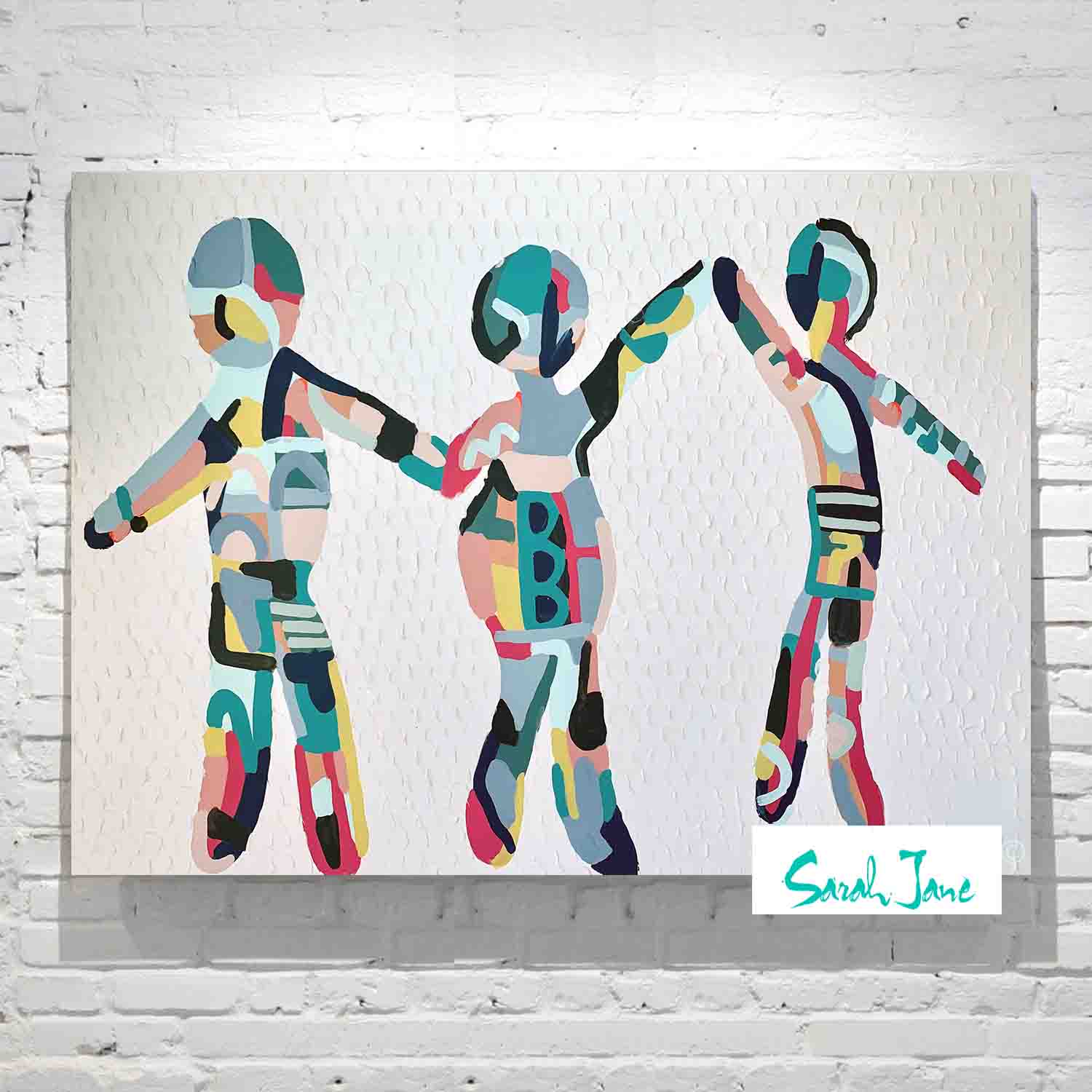 Well done Melbourne and Sydney, you did it! Lets dance and celebrate Freedom Day together. Freedom Day I is an Abstract Figurative Painting People Dancing with Vibrant Colours. By Australian Artist Sarah Jane.