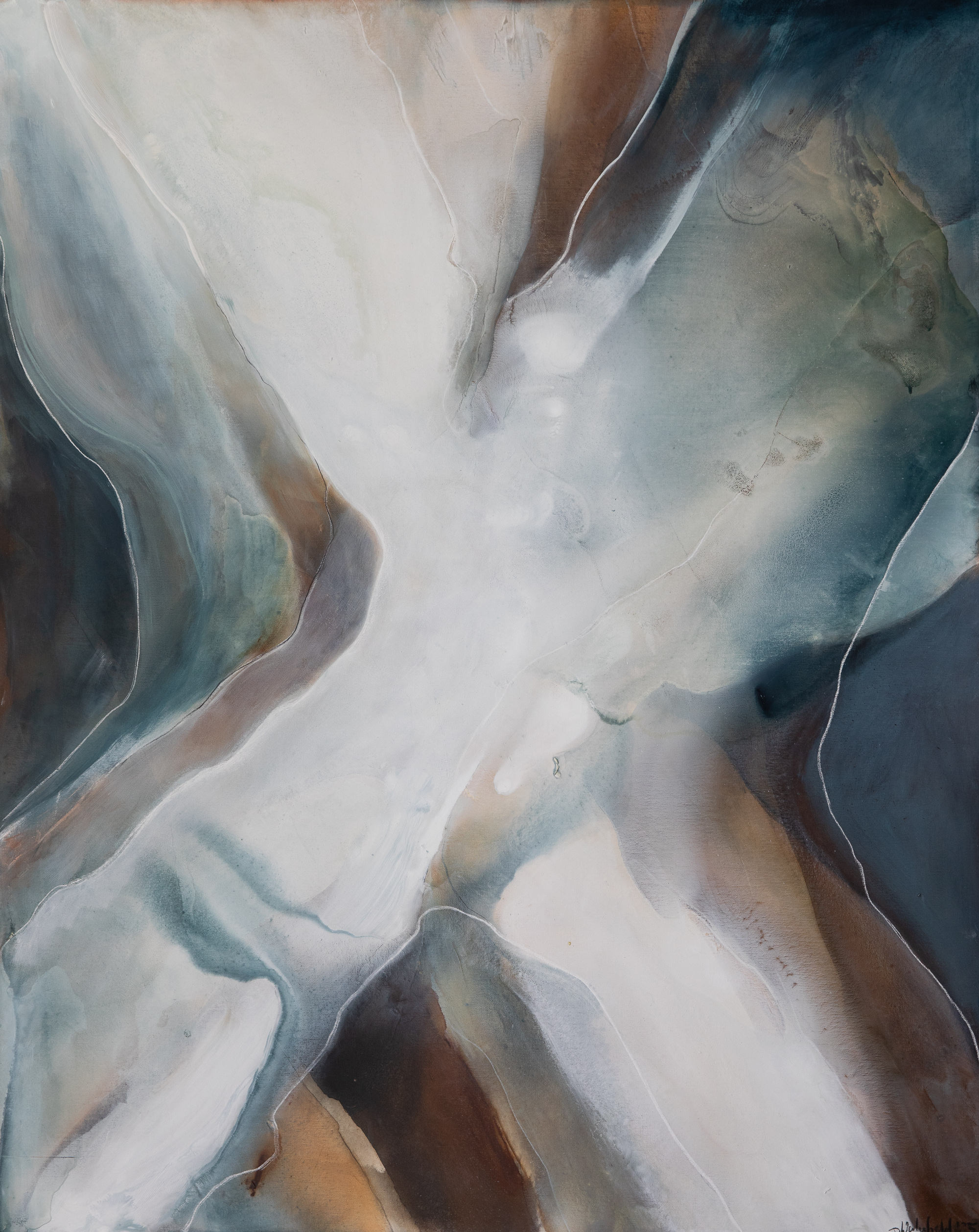 I have mixed a variety of desert colours for use in these paintings: ochres, terracotta’s, pinks, and browns, plus a selection of oxide, to create the effect of moving through this unique landscape.