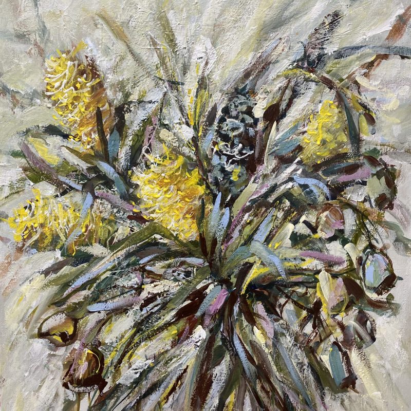 Sealed with three coats of high-gloss varnish, the artwork’s sleek, glass-like surface intensifies its depth and vibrancy. Despite its size, this little piece really pops.