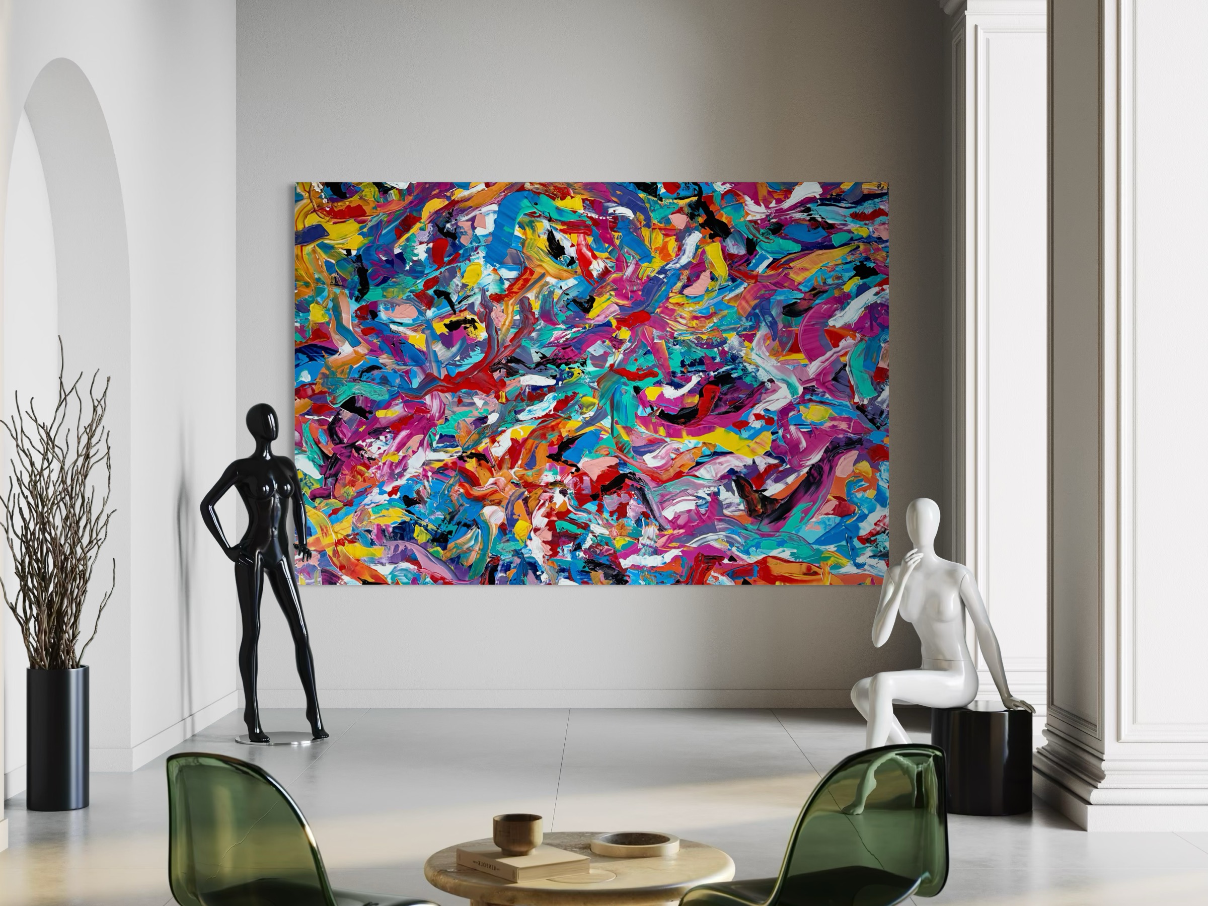 Large statement piece 178×122 cm premium custom gallery stretched thick edge canvas .