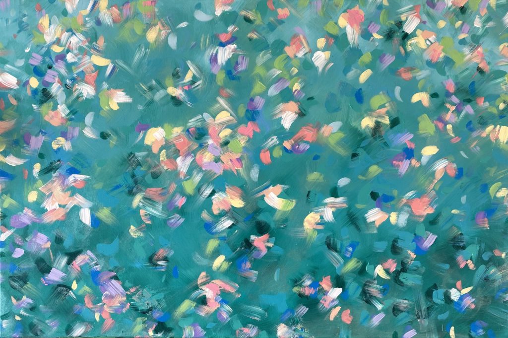Petals chase around the canvas in this abstract floral work.