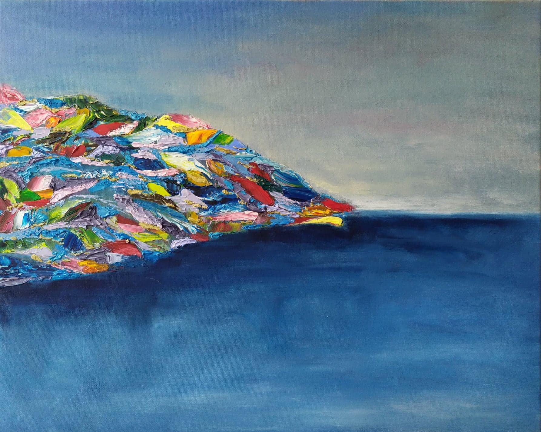 The abstract painting is made in oil, with impasto medium for extra depth and texture. The edges are painted black, it’s ready to be displayed. Signed on the back.