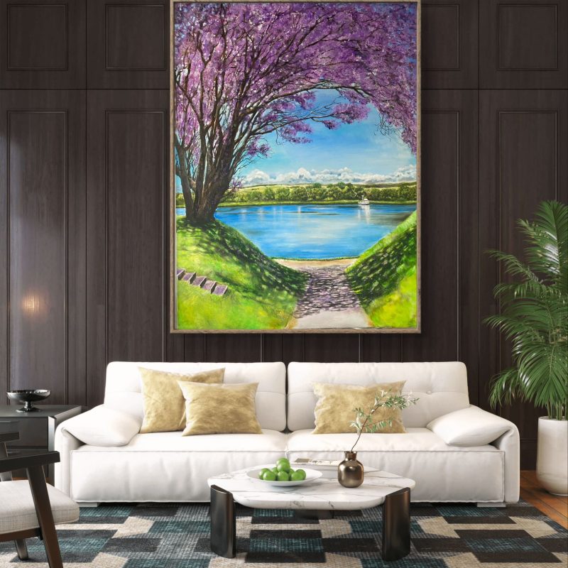 Quality acrylics used giving long lasting rich pigmentation/lustre. Designed on acid free environmentally unbleached cotton duck, triple coated with universal primer and gallery style folded corners. Protective Matte Varnish applied to protect work. The surface of the painting has a slight textured surface encouraging the viewer to touch and feel the art.