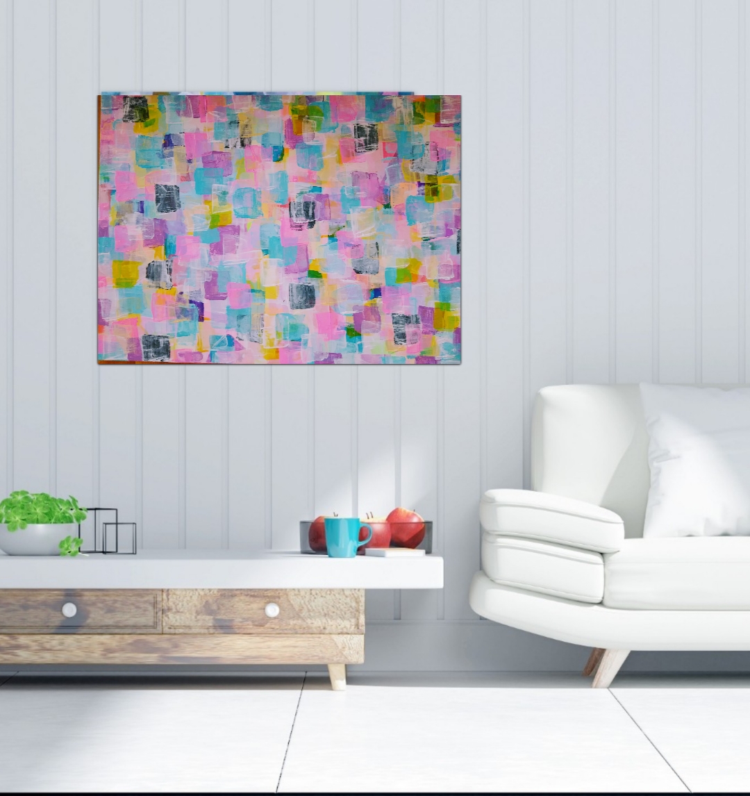 Modern Abstract painting on stretched canvas, inspired by beautiful transparent yogurt and ice cream colors.