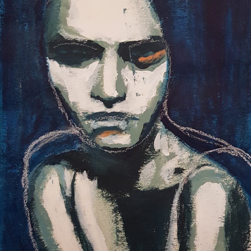 Acrylic on acid free heavy bodied artists paper, requires framing.