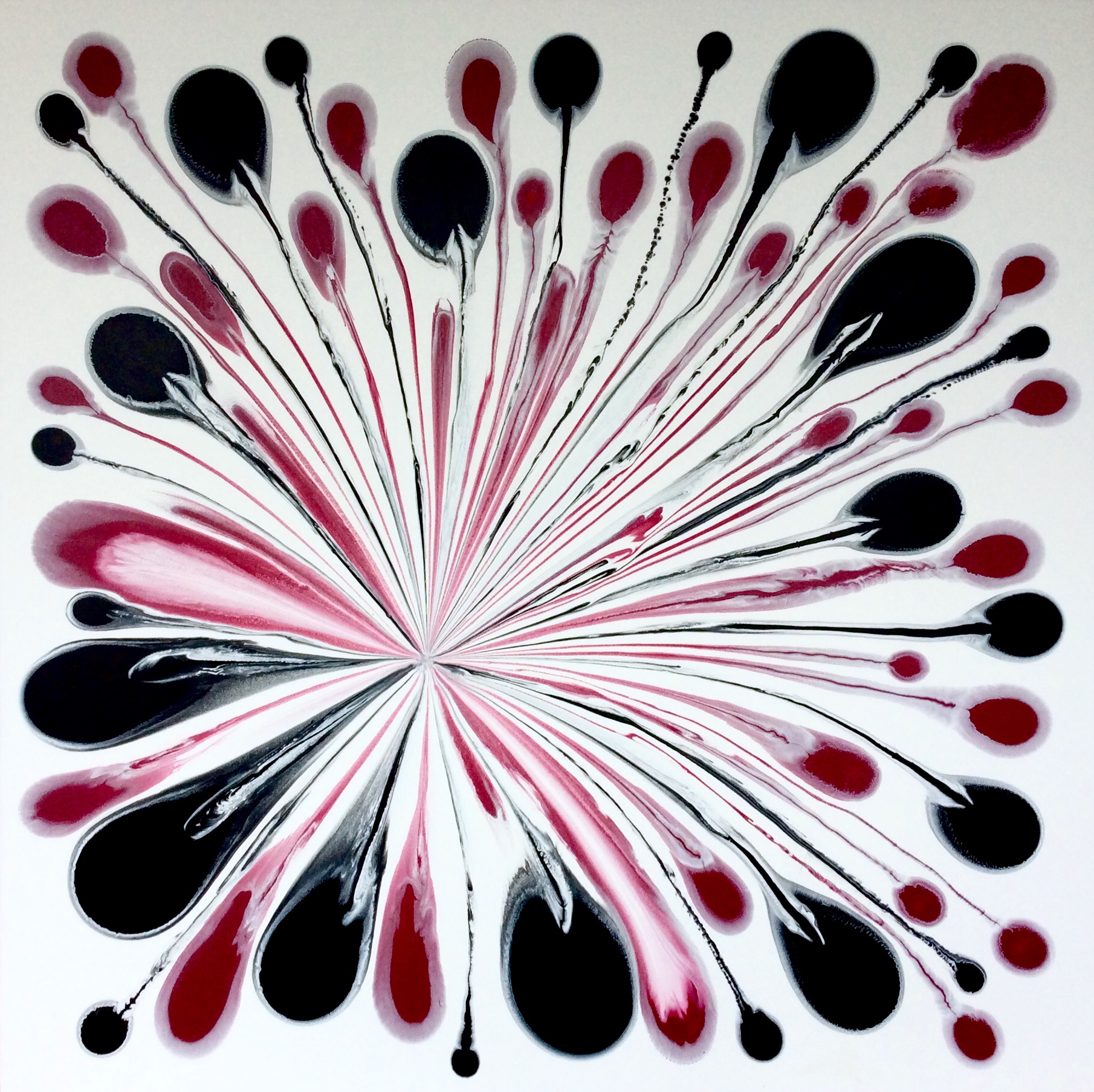This is an original painting created using acrylic paints poured over stretched canvas. This is a really fun and vibrant piece. It is crisp and bright, and the black and fuchsia pop against the white. There are clean lines, and beautiful fracturing details around the bulbs of colour. It looks fantastic against a dark wall, but would look great with many wall colours. It has three coats of protective gloss, and will arrive ready to hang.
