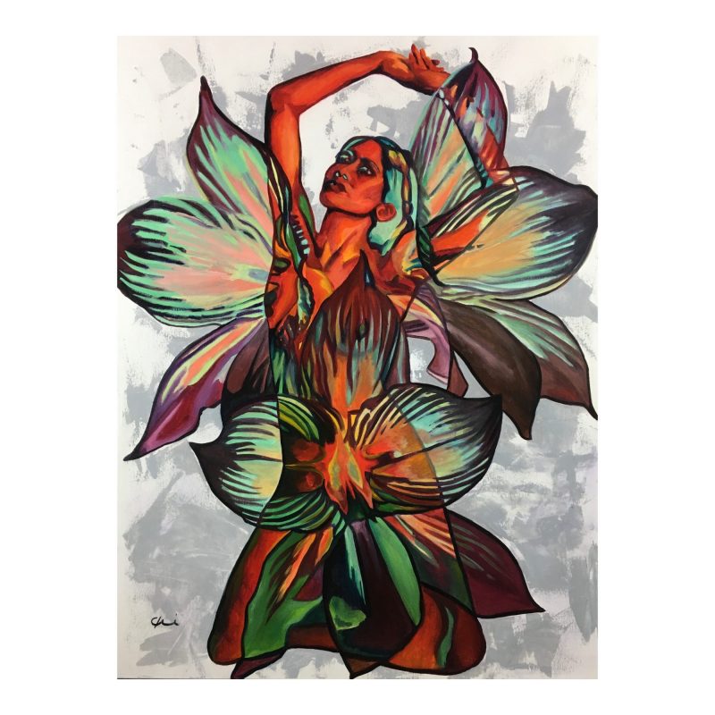 The work was created on canvas with the edges painted in black, the work is ready to hang.