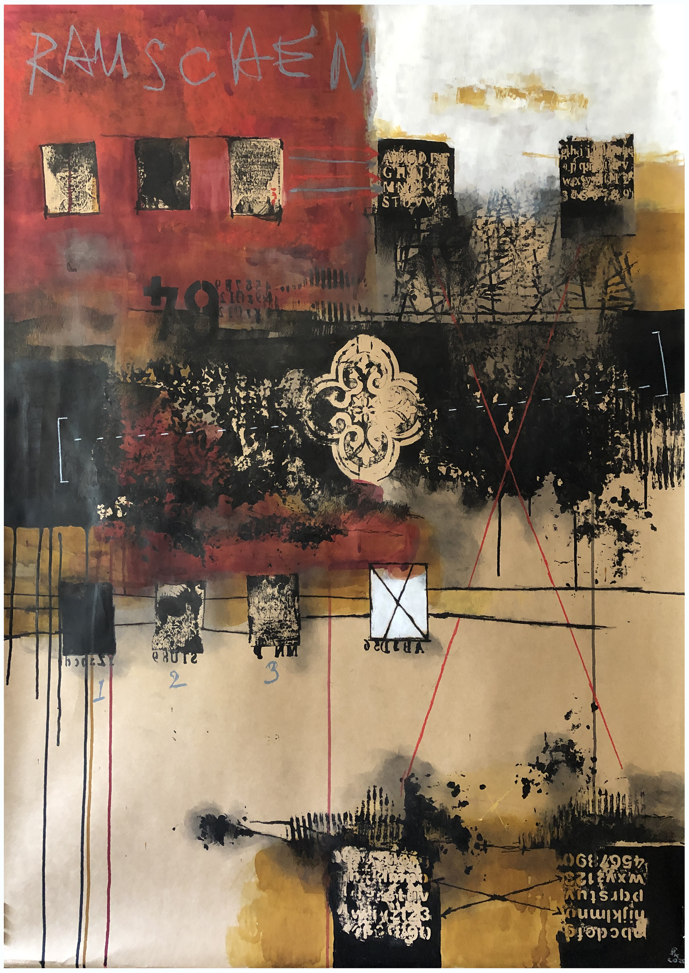 Mixed media artwork on 220 gsm brown paper adhered to board