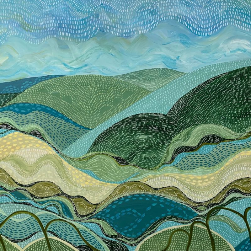Mixed Media on paper adhered to board, ready to hang.
