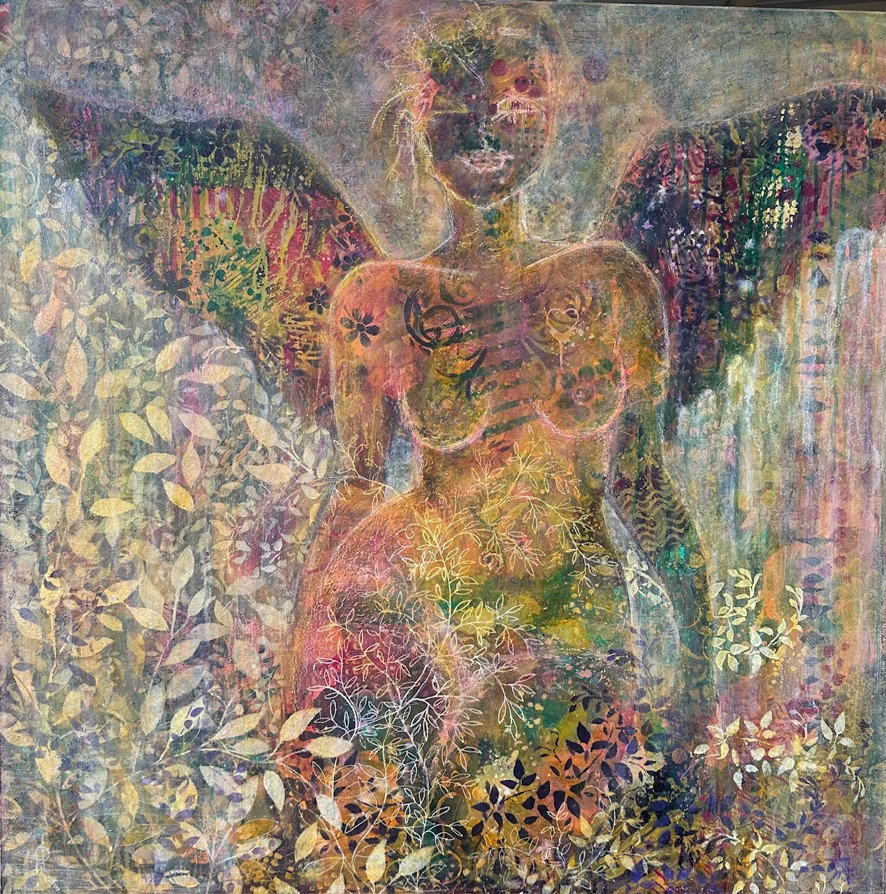 Gaia Earth Goddess by Rosemary Legat – Acrylic paint and watercolour pastel on stretched canvas.