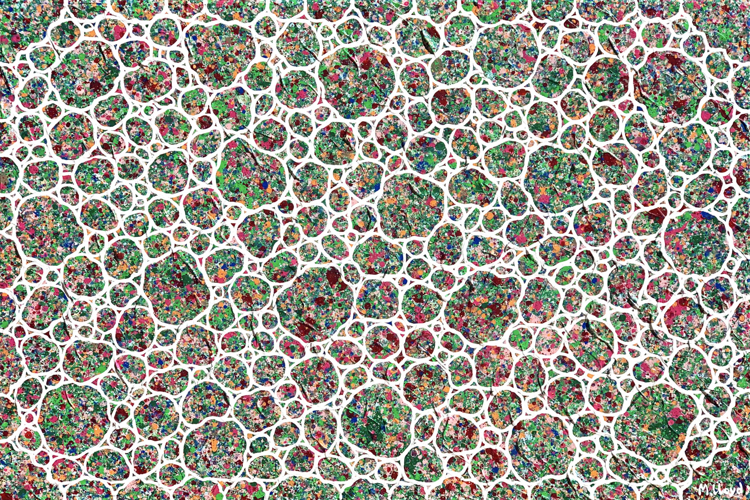 This abstract painting was also inspired by my own garden. Even though I live in the Adelaide hills I love to create a tropical vibe garden. I have this beautiful pink leafed plant that contrasts with my monstera and other leafy green plants. The background is a vibrant mix of deep greens, grassy greens, soft pinks, magenta, salmon orange, fuchsia, beige, brown with white outlines for the pebbles. Background has a light texture which picks up in the light. Painted around edges, ready to hang either landscape or portrait.