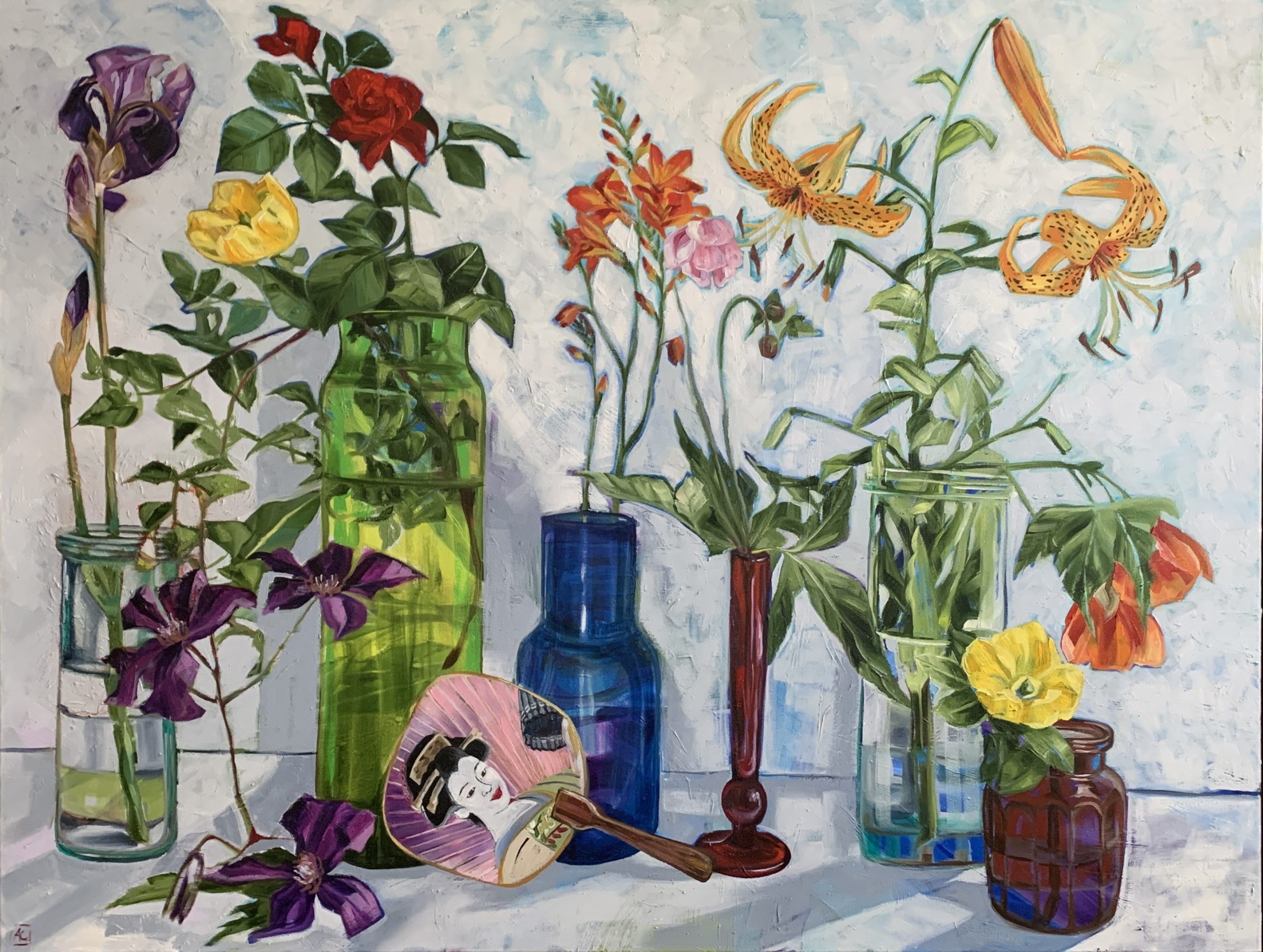 This work was created with a wish to present the idealised English cottage garden that is very common in the area. A unique environment surrounded by large areas of National Parks housing tree ferns and huge Mountain Ash eucalypts.