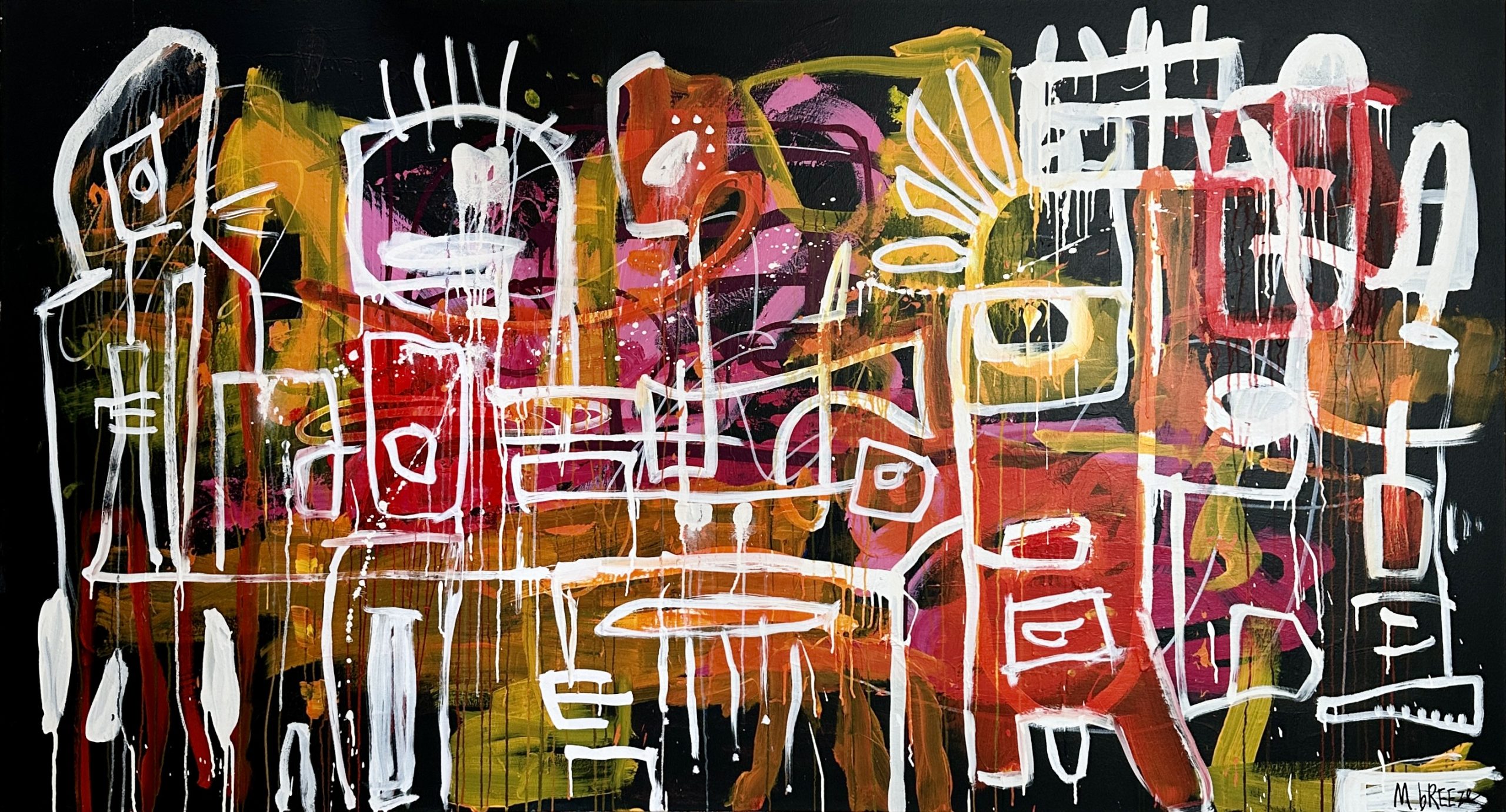 Original artwork using acrylic paints applied with trowel, hands and brush on to stretched canvas