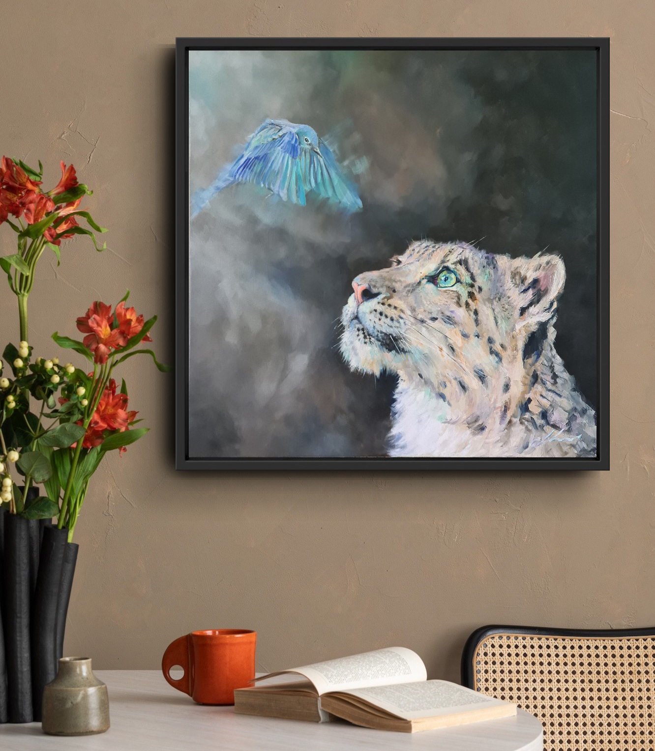 Gazing Into Grace by Jo S. Stacey. Original painting in Winsor & Newton Oil on stretched canvas, framed in black floating frame and ready to hang.