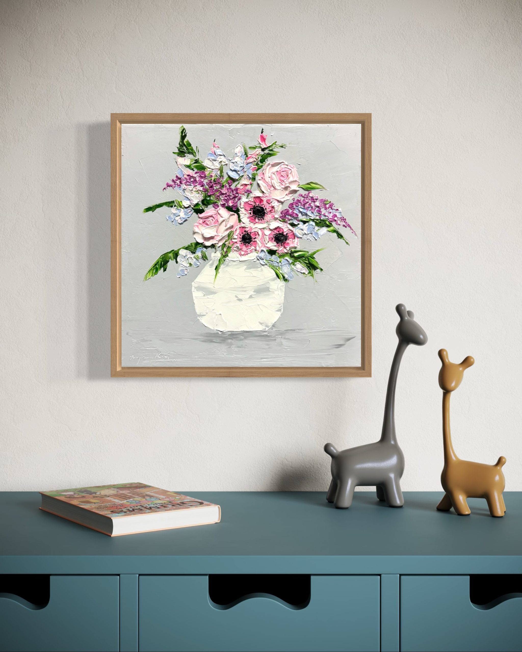 The artwork is made using impasto technique with palette knife.