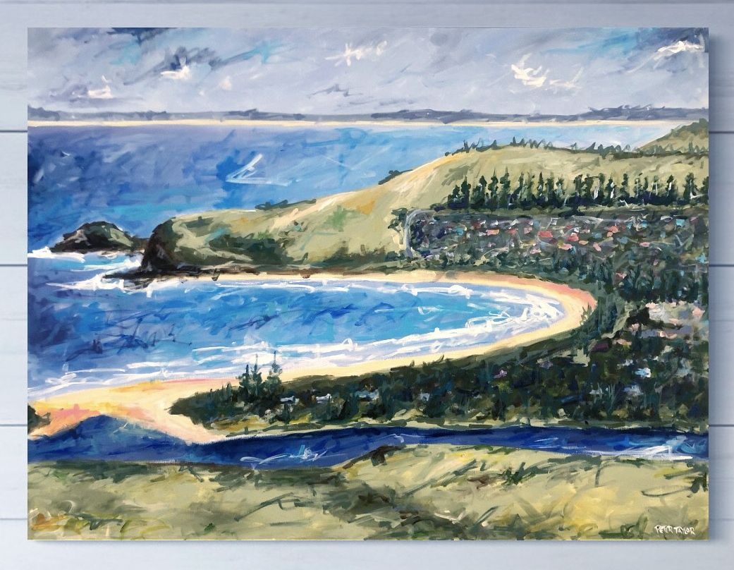 This expressive impressionist piece shows stunning and picturesque view of Gerringong and Werri Beach on the South Coast of NSW, just south of Wollongong – by Australian artist Peter Taylor.