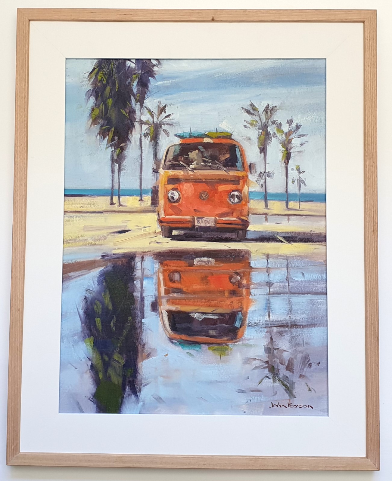 Getting Ready by John Pearson – I was struck by an old Kombi parked in front of the beach with surfboards on the roof as the surfers prepared to enter the surf. The reflection of the Kombi added to the mystique.