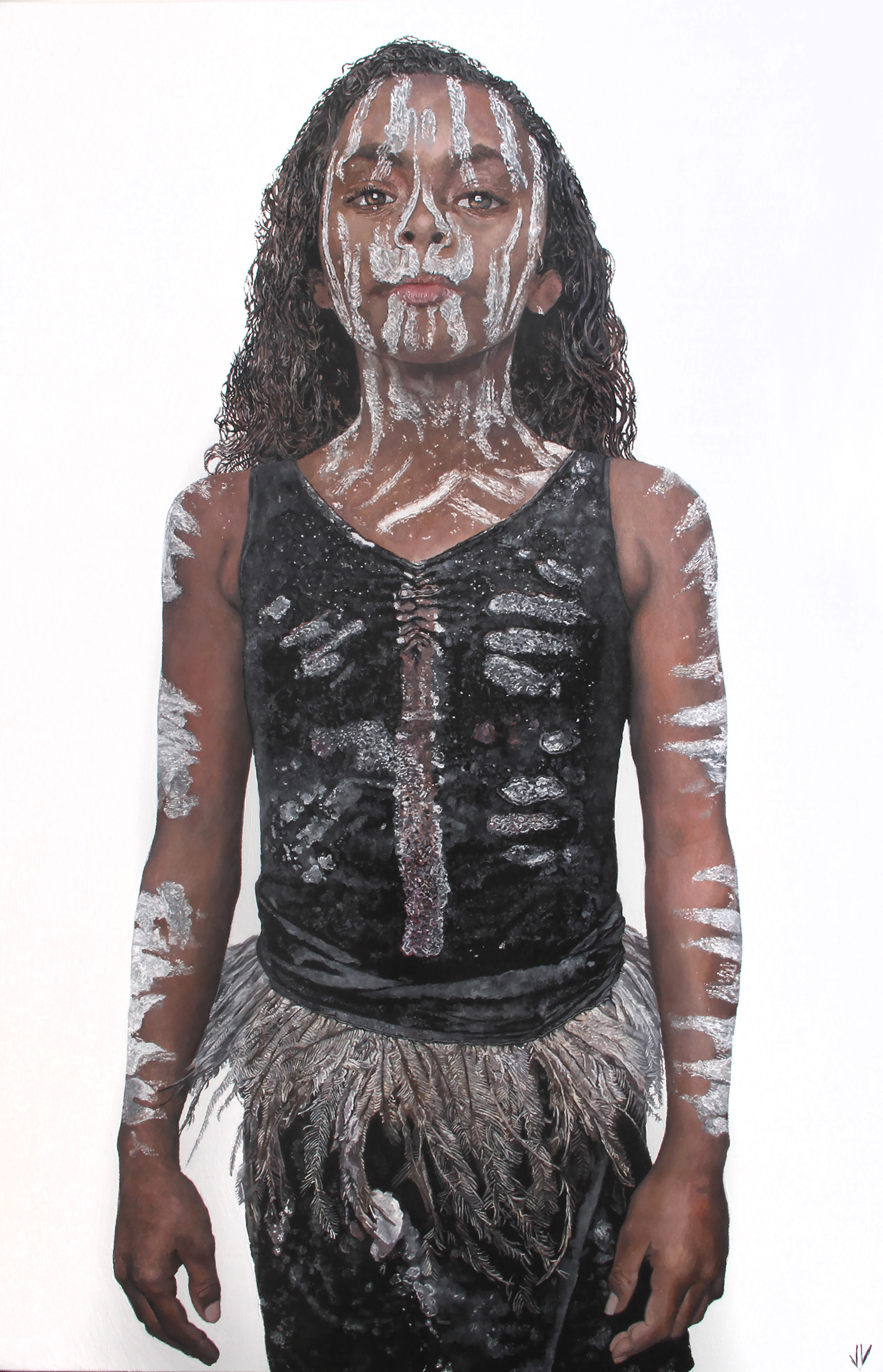 Tayvonne Cora is the daughter of Luther Cora, a leader of the Yugambeh Language Group (from the East Coast of Australia). With her father and family, she shares her rich culture through the art of dance. Embodying past generations, she wears traditional garments, painted with ochre, representing her individual animal totem, Ghearra, the Sulphur-crested Cockatoo. Passed down through the generations, totems are given as an acknowledgment of their ancestry, signifying a link between the individual, the environment, and their spiritual ancestors.