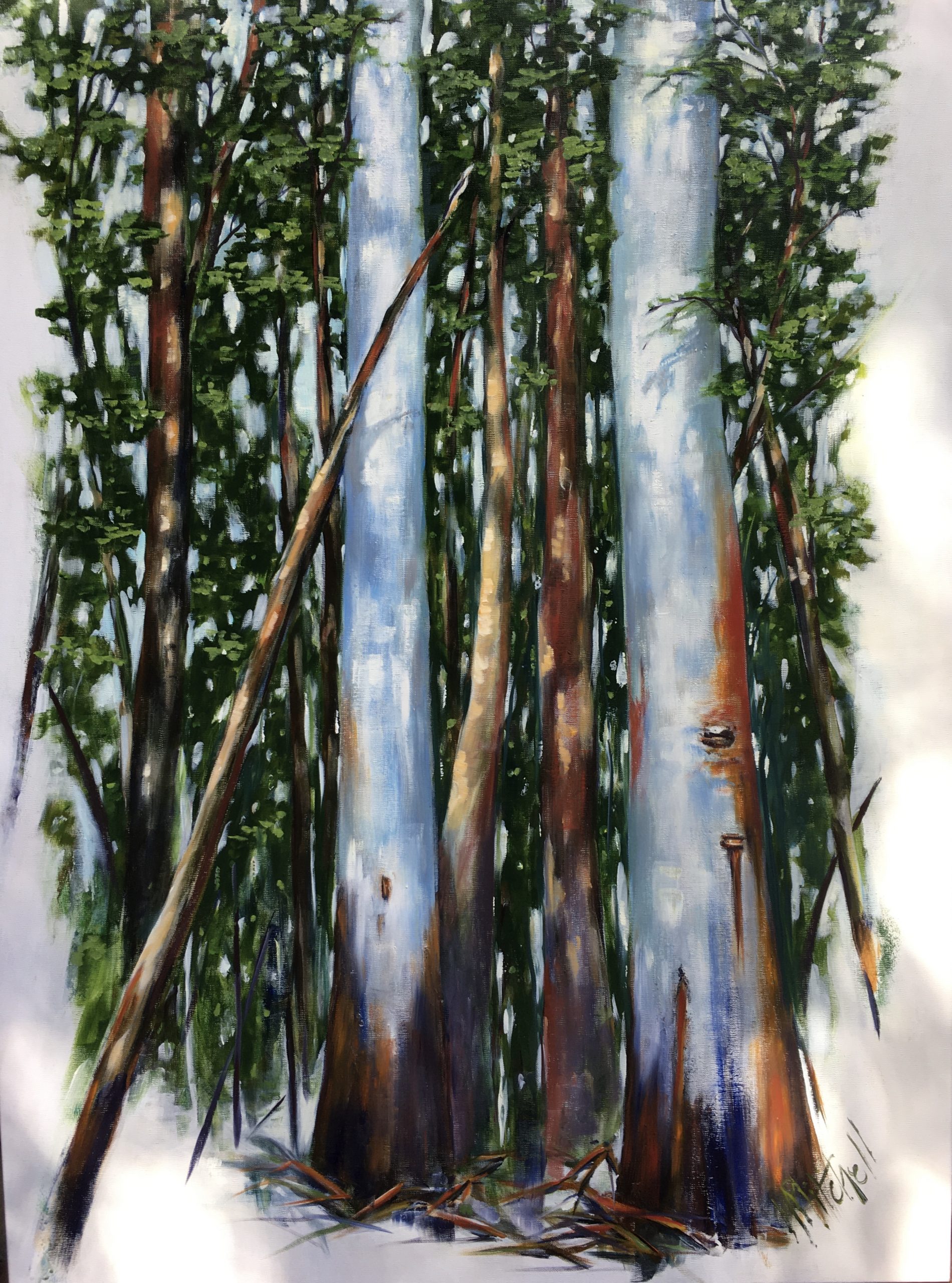 Ghost Gums by Pamela Mitchell – Pam lives in a rainforest area and love the light and shadow play onto the trunks of the trees.
