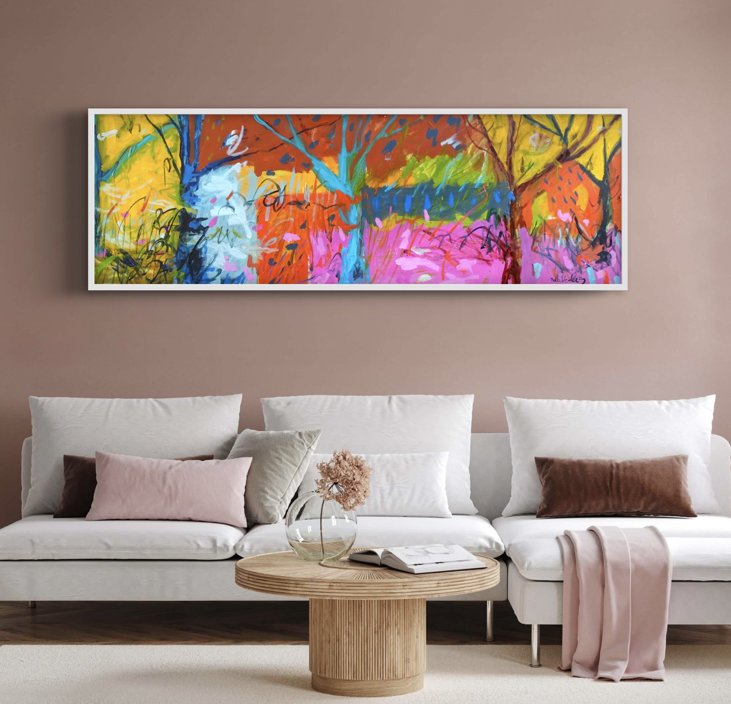 This work is oil and acrylic on 40 X 122 cm on Luca Premium Professional Canvas, stretched onto a kiln dried frame, wired ready to hang, signed on the front and sent with an artist cv and certificate of authenticity.