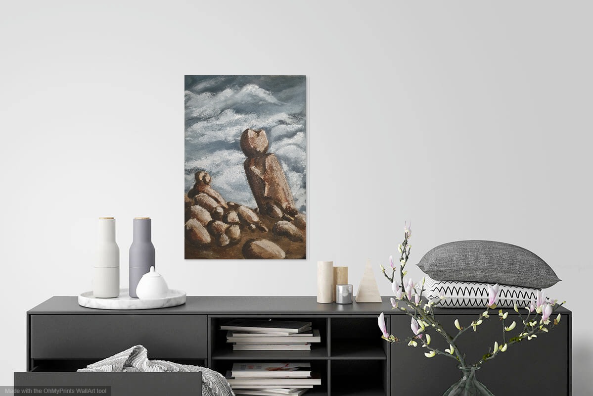 The sides are painted in a wrap around style which makes framing optional. Ready to hang.