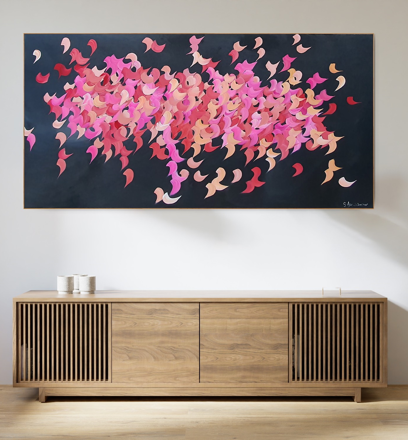 I view painting as sheer passion and feeling. Through my process I don’t seek to depict a set idea or subject, but instead I let scenes and dynamic movement emerge organically.