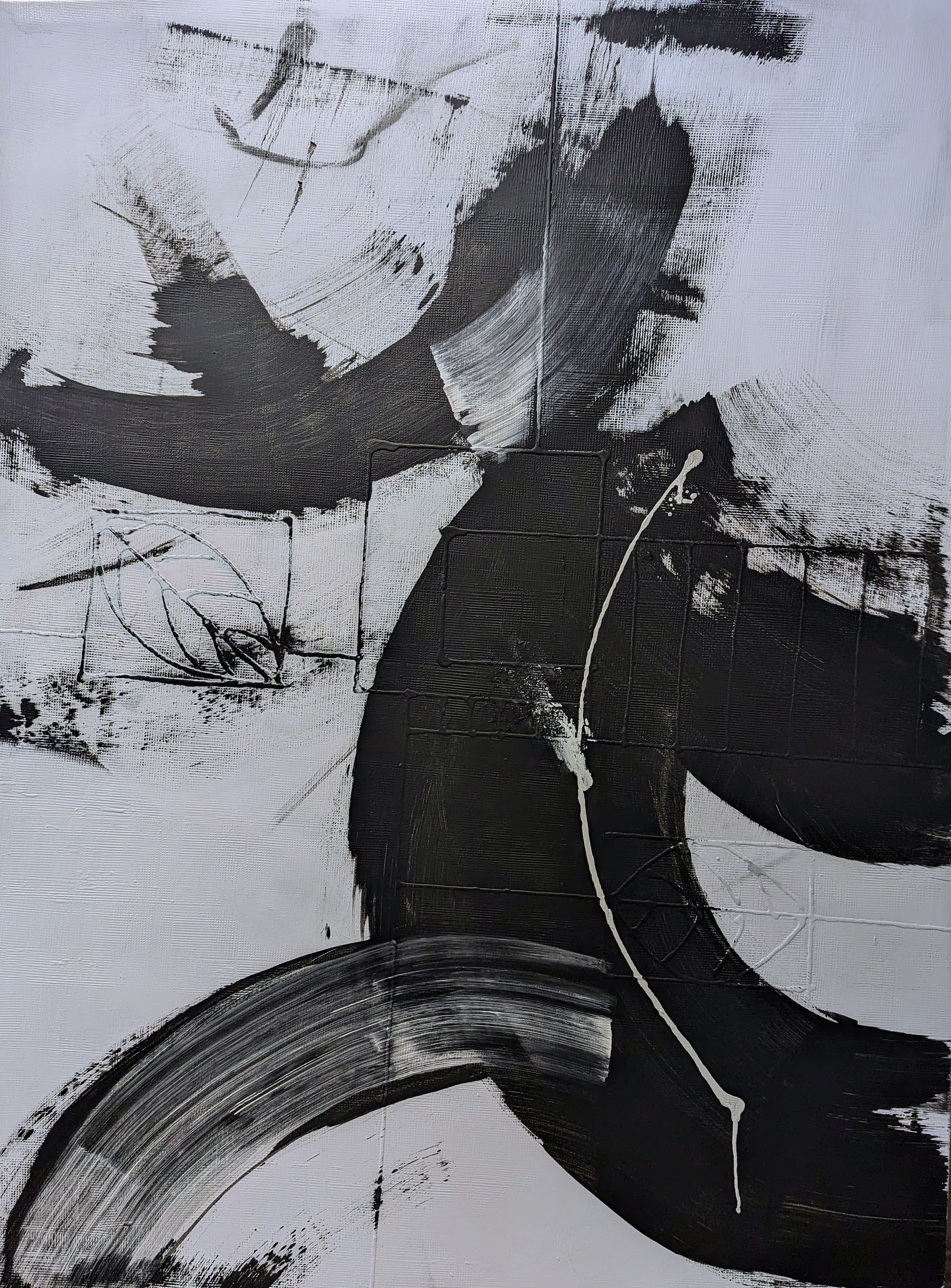 The Going Around by Maria Fernandez painting features an almost traditional Japanese black and white colour that blend together seamlessly to create a breathtaking visual experience. The focal point of the painting is a man, which has been masterfully rendered to show every crease and imperfection.