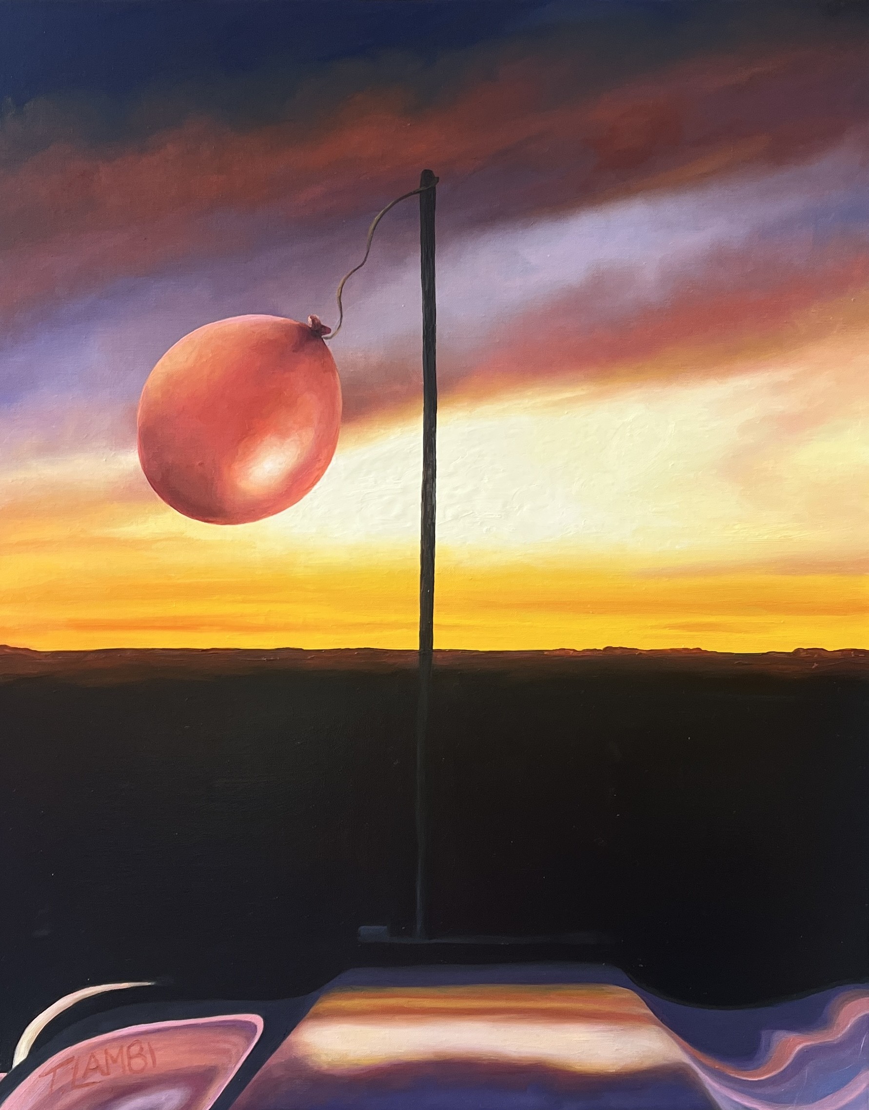 The balloon is a bold presence in the painting, capturing that gently nostalgic pull of being led back to where you belong and how good it feels to head home.