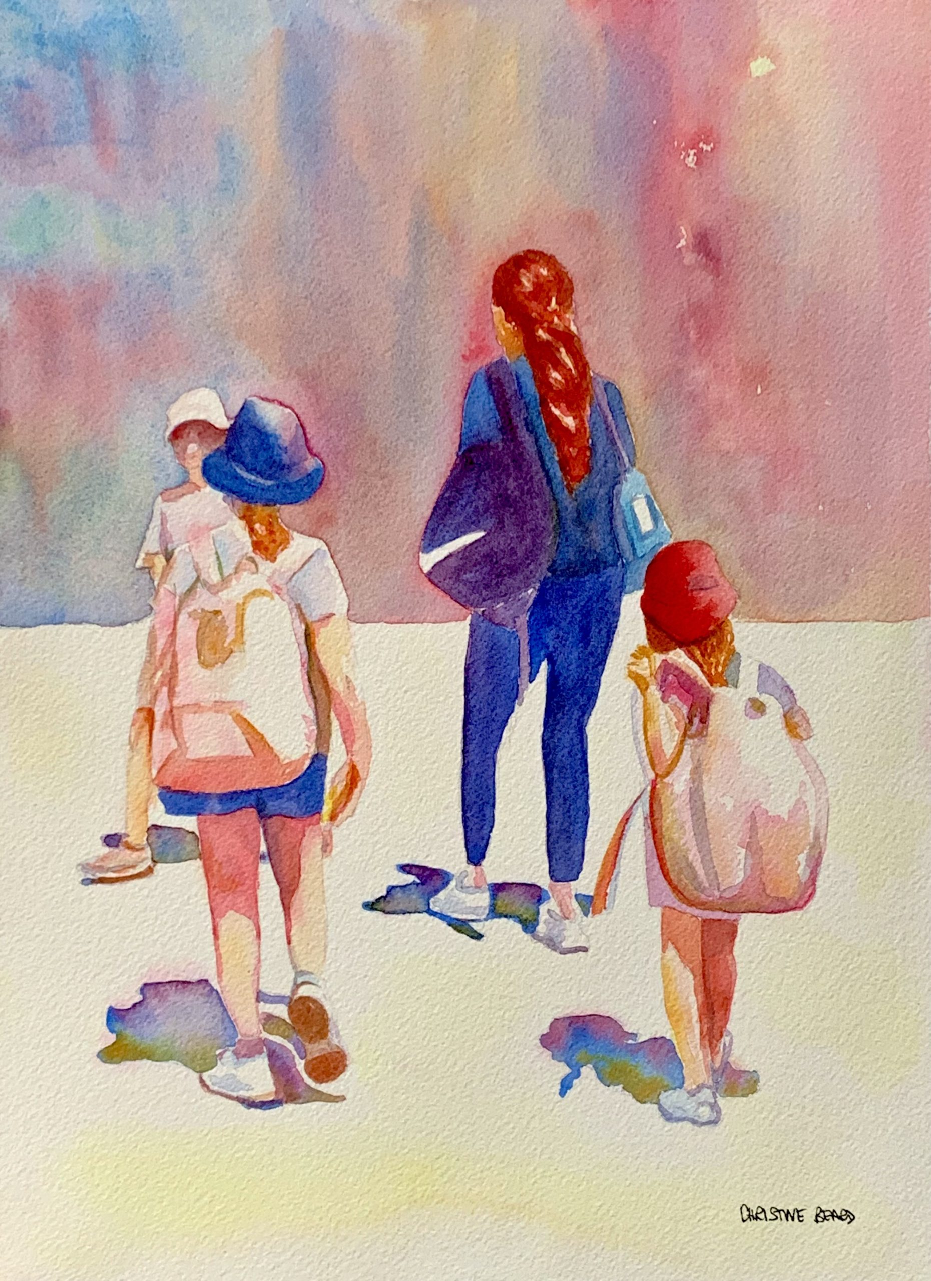 Going On A School Trip – Â by Christine Beard. Watercolour on 300gsm professional grade Arches paper