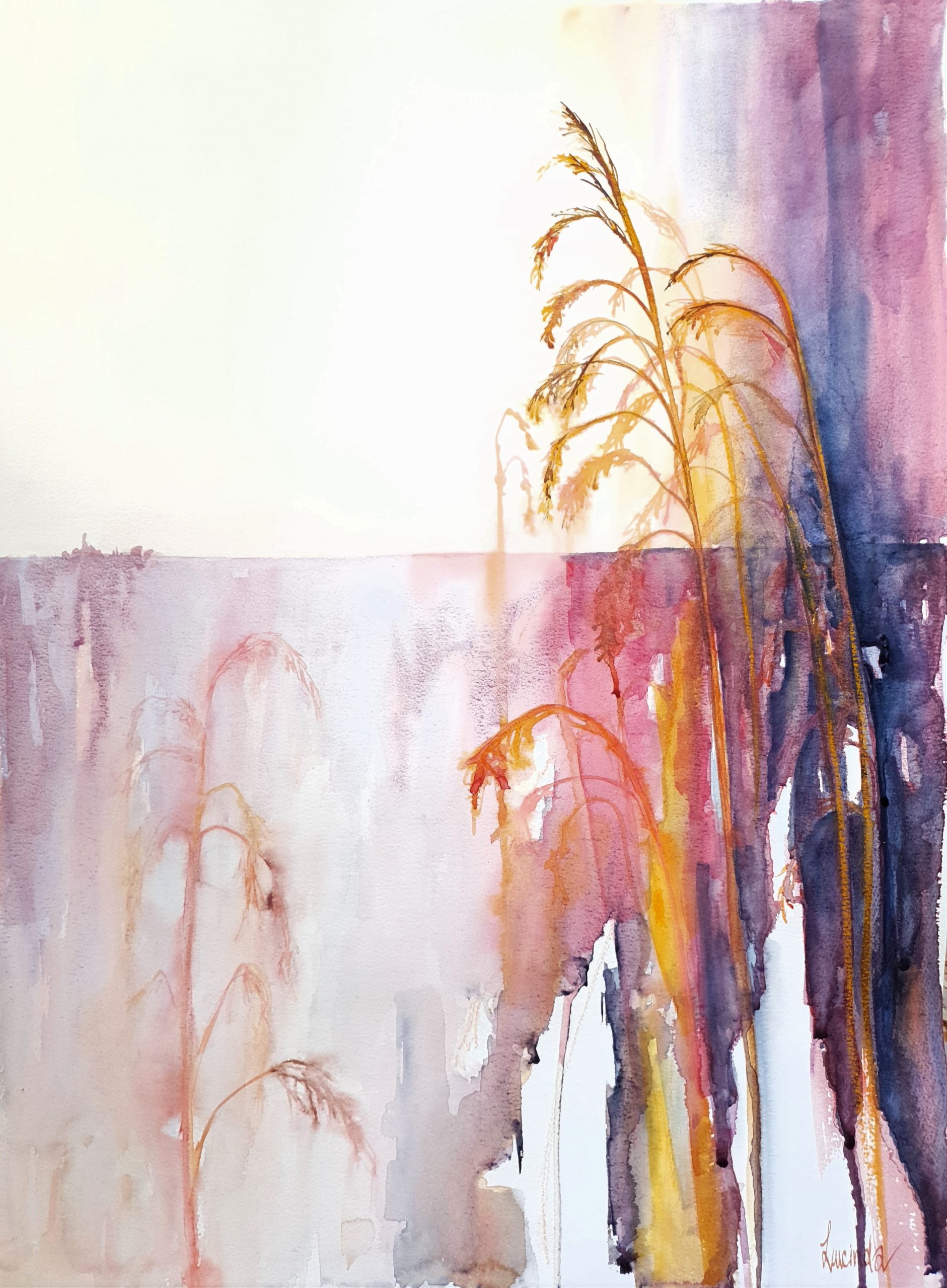 Gold Grass by Lucinda Leveille is a watercolour and ink piece, part of a new series of watercolour works being offered exclusively through Art Lovers Australia.